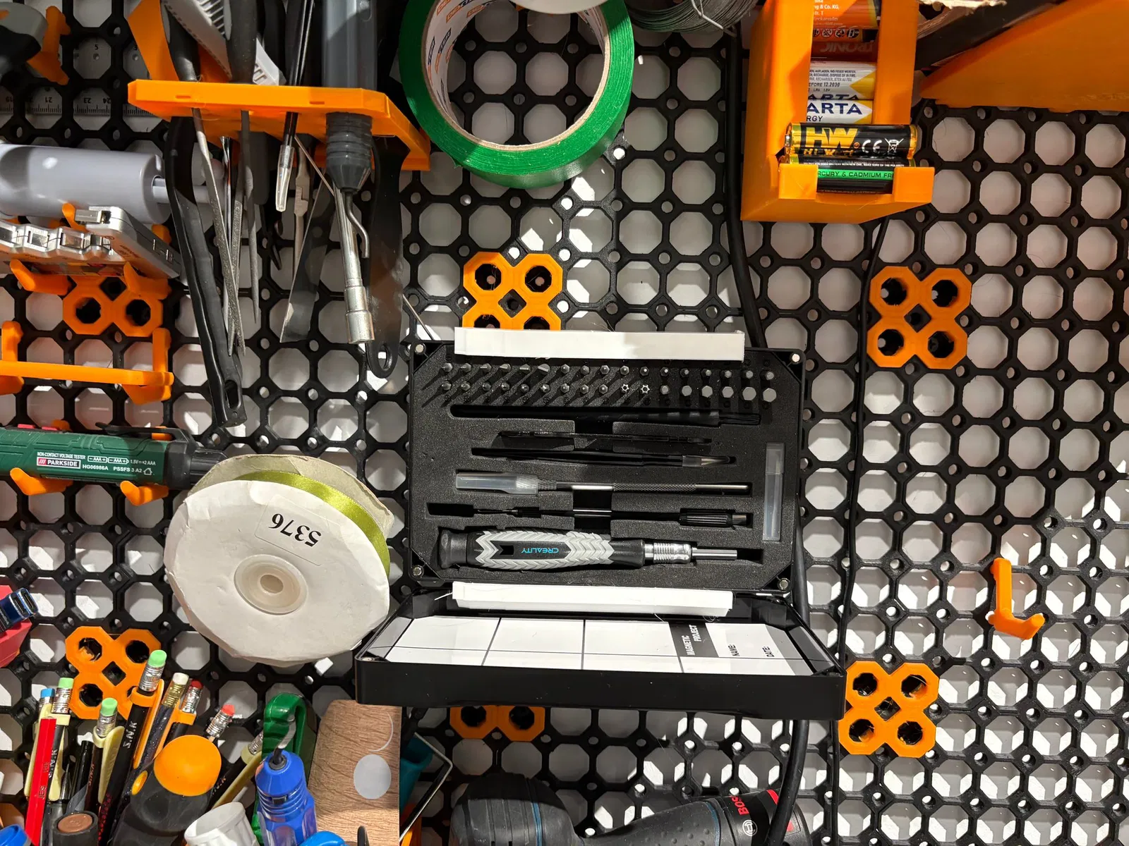 Giá treo tường tùy chỉnh cho khay dụng cụ Creatly & Parkside HG07917. Thiết kế hỗ trợ hệ thống Multiboard Lite và bắt vít tiêu chuẩn, dễ dàng điều chỉnh kích thước thông qua Onshape để phù hợp với mọi loại khay dụng cụ của bạn.
