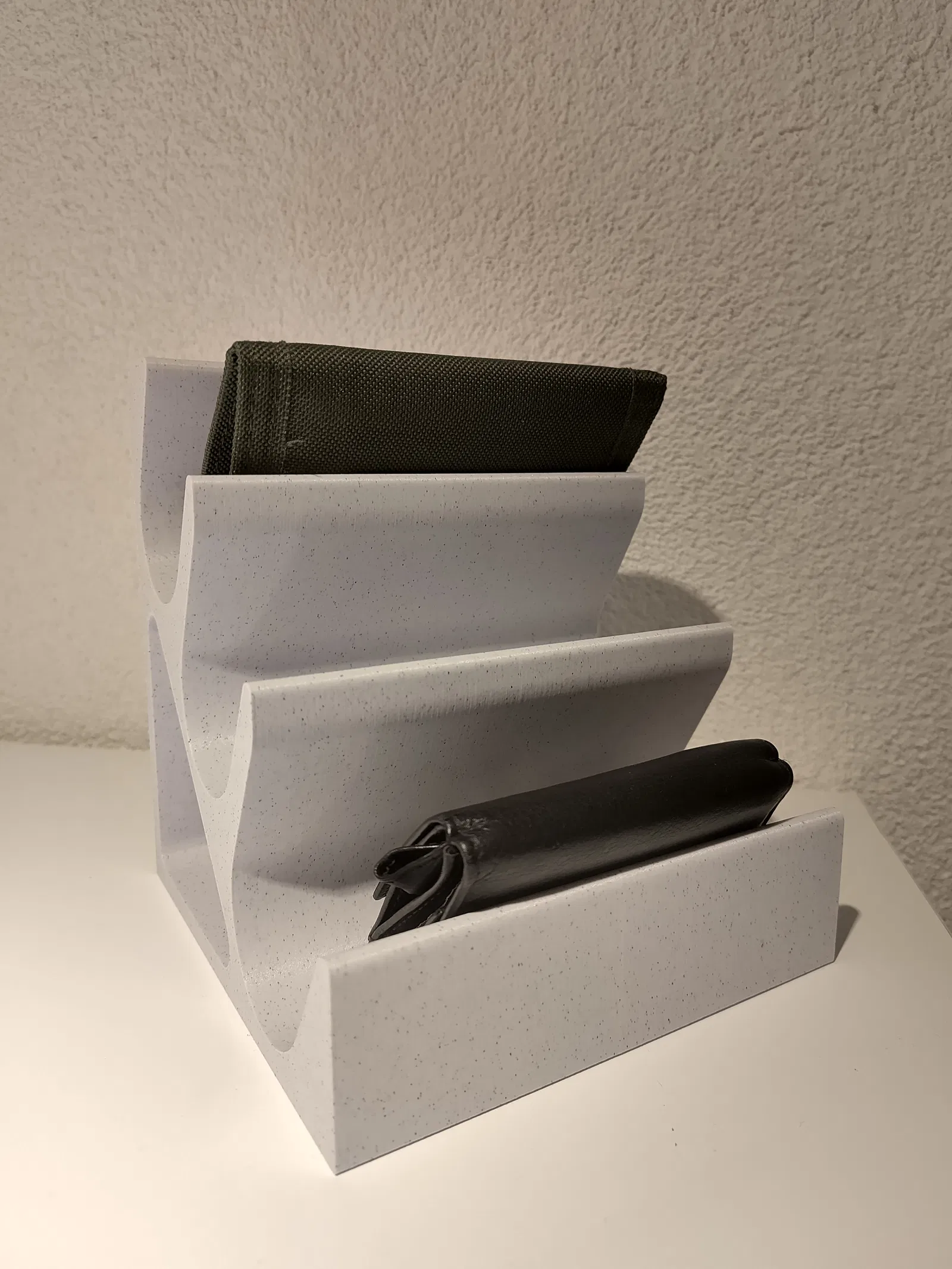 Chiếc giá đỡ tiện dụng để cất ví hoặc hộp kính gọn gàng. Thiết kế linh hoạt với tùy chọn 2 hoặc 3 ngăn, phù hợp để sắp xếp vật dụng trong nhà. Bạn có thể tự do tùy chỉnh thông số in để có thành phẩm ưng ý nhất.