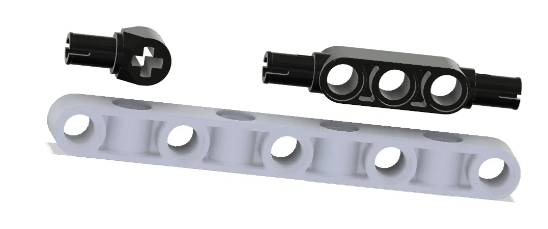Technic Liftarm Thick 1 x 5 với các lỗ xen kẽ — tương tự như LEGO 2391 nhưng là kích thước phi LEGO.