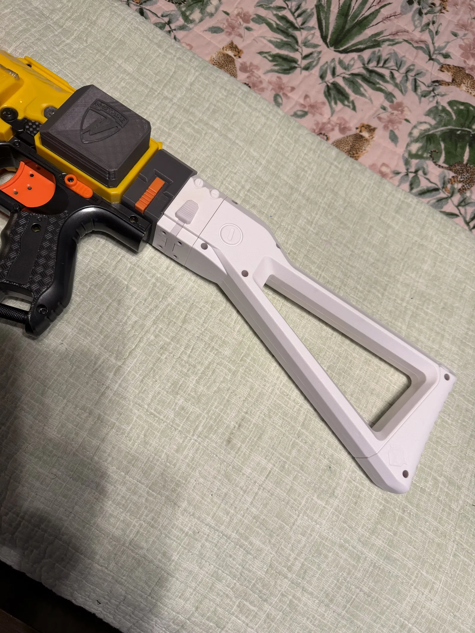 Tui thấy mấy cái báng súng Nerf hơi bị ngắn quá nên tự tay thiết kế cái extender này. Mỗi cái sẽ giúp báng súng của bạn dài thêm 30mm.