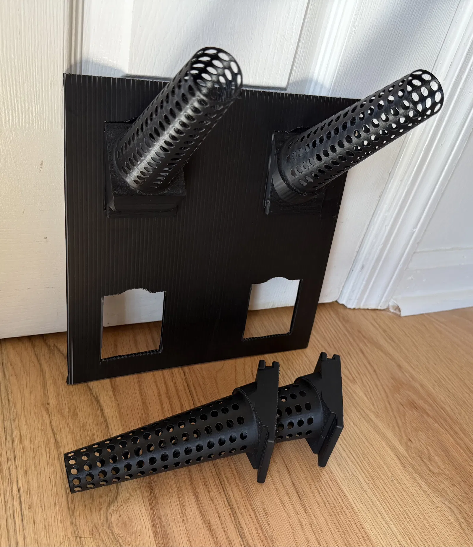 Tụi mình đã bắt đầu với các chóp làm khô găng tay vốn đã rất tuyệt vời của Herman. Ý tưởng làm cho chúng có thể xếp chồng lên nhau để cất giữ thật sự rất thông minh! Gia đình mình có sở thích đi thám hiểm hang động và thường xuyên dẫn thêm bạn bè đi cùng. Điều đó khiến tụi mình có rất NHIỀU găng tay cần phải làm khô. Tụi mình muốn tạo ra một giải pháp để có thể đặt hàng loạt găng tay trước quạt một cách dễ dàng.
