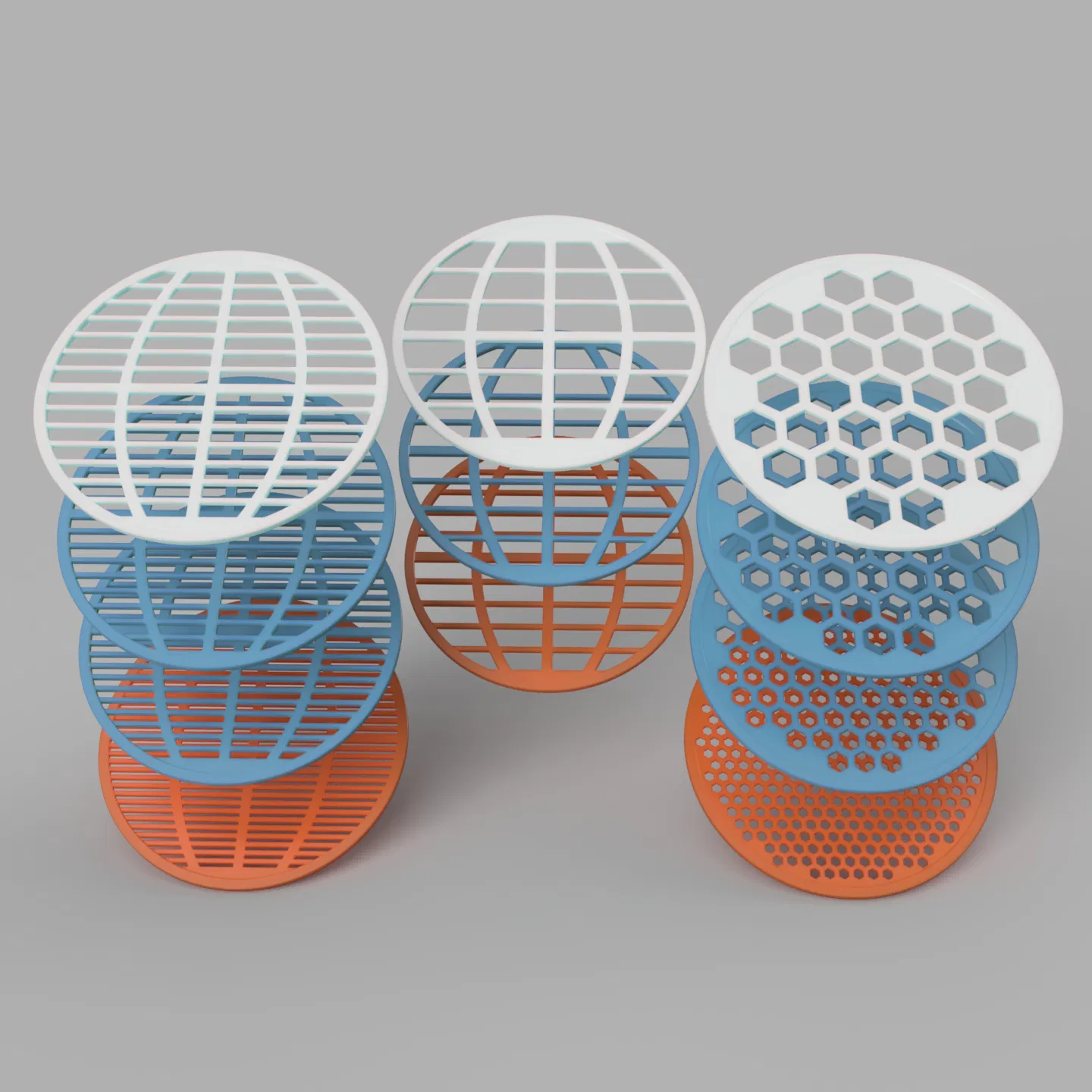 Bạn có thể in một đĩa có đường kính và độ dày chuẩn với 0 lớp đáy/trên cùng rồi tận dụng lớp infill làm lưới lọc. Tôi khuyên không nên dùng cách này cho vật liệu quá lớn vì nhựa sẽ bị cong và làm lọt các hạt to hơn mong muốn. Cách này in sẽ nhanh và hiệu quả hơn nhiều so với mấy mẫu tôi đã thiết kế ở đây!