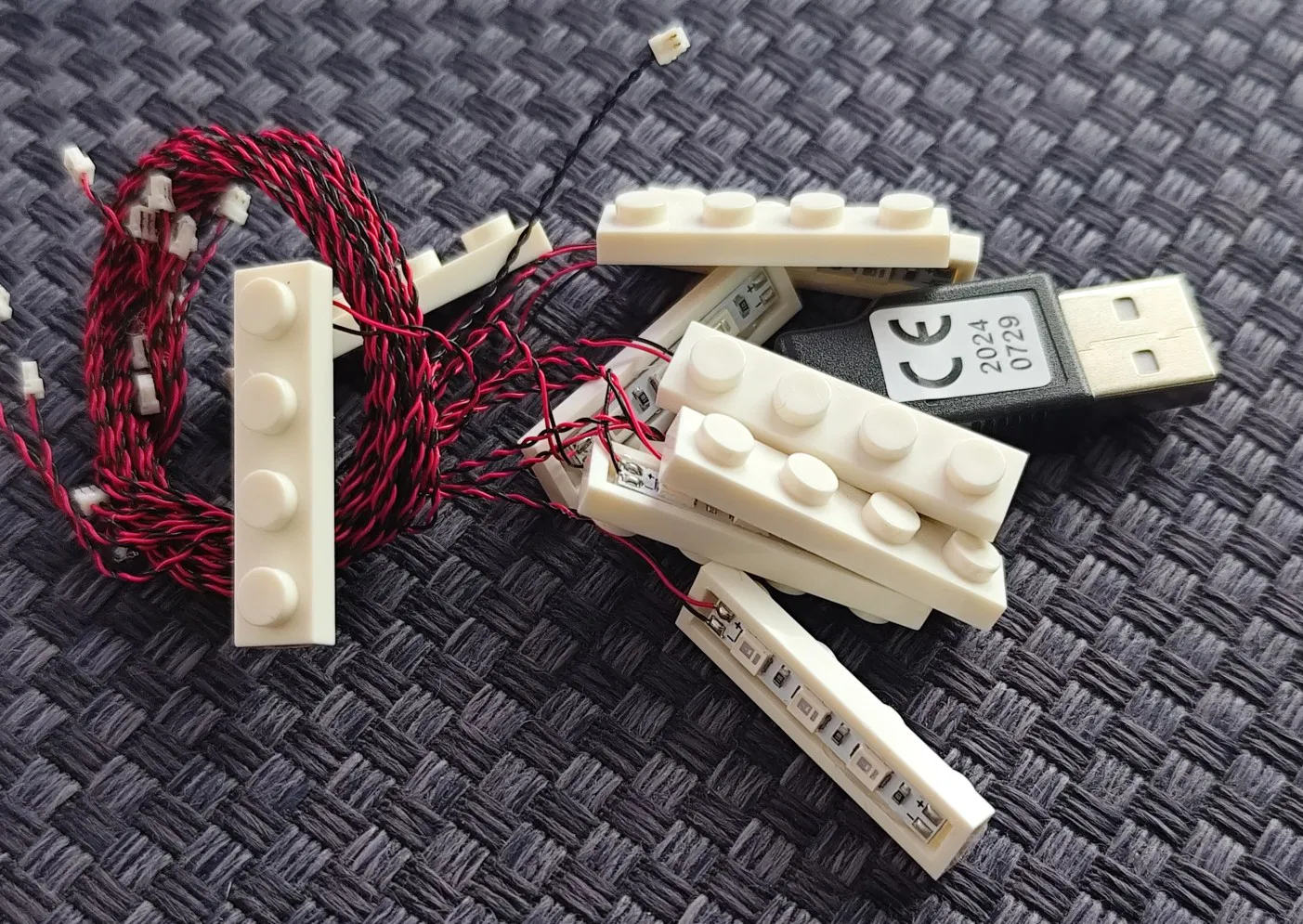 20x Gạch LED 1x4 kèm đầu nối USB và dải PCB (tìm mua trên Aliexpress)