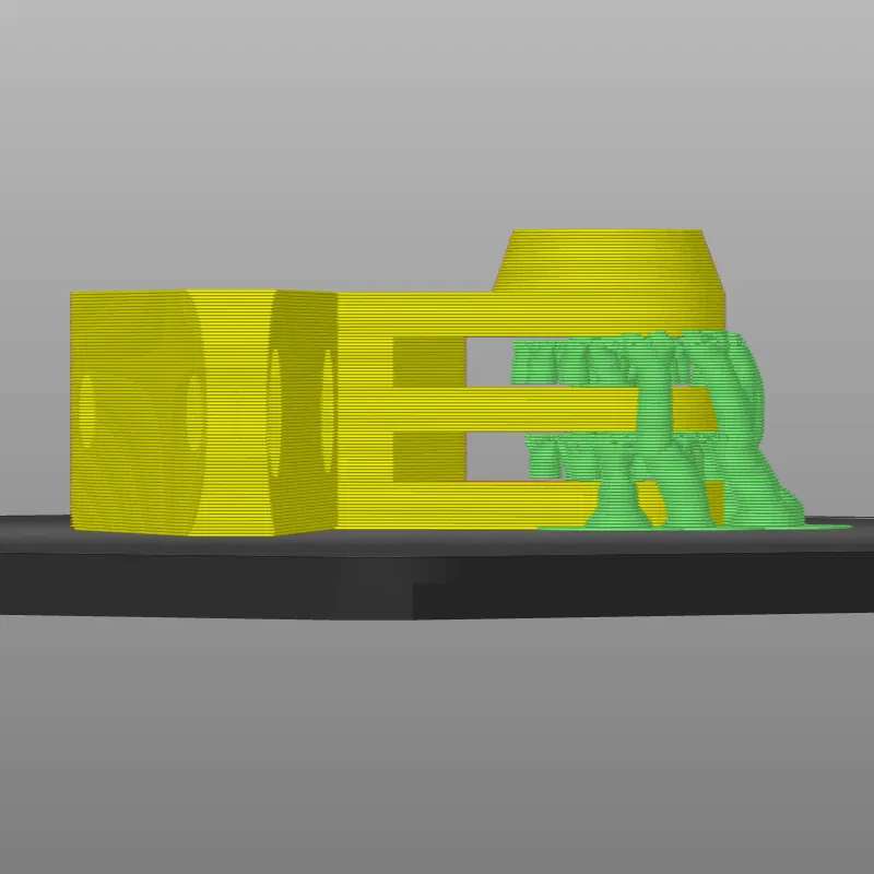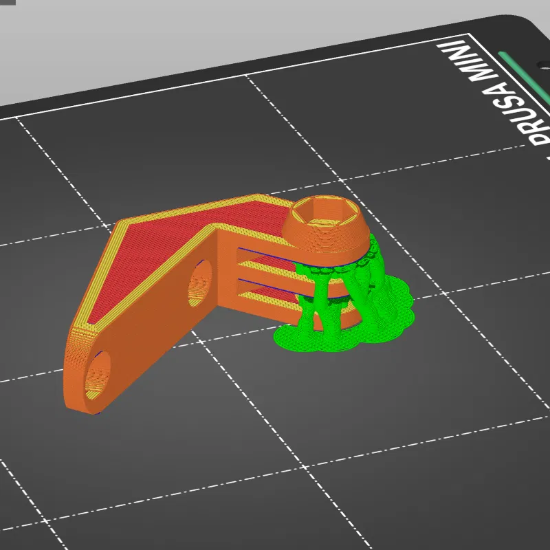 Mẫu này được mình vẽ hoàn toàn từ đầu bằng FreeCAD. Các bạn có thể in nằm phẳng với support như hình minh họa. Cách này giúp các đường layer xếp thẳng hàng với nhau, tránh tình trạng bị tách lớp (de-lamination), giúp chi tiết in ra chắc chắn hơn nhiều. Tất nhiên, bạn vẫn có thể chọn in đứng nếu muốn.