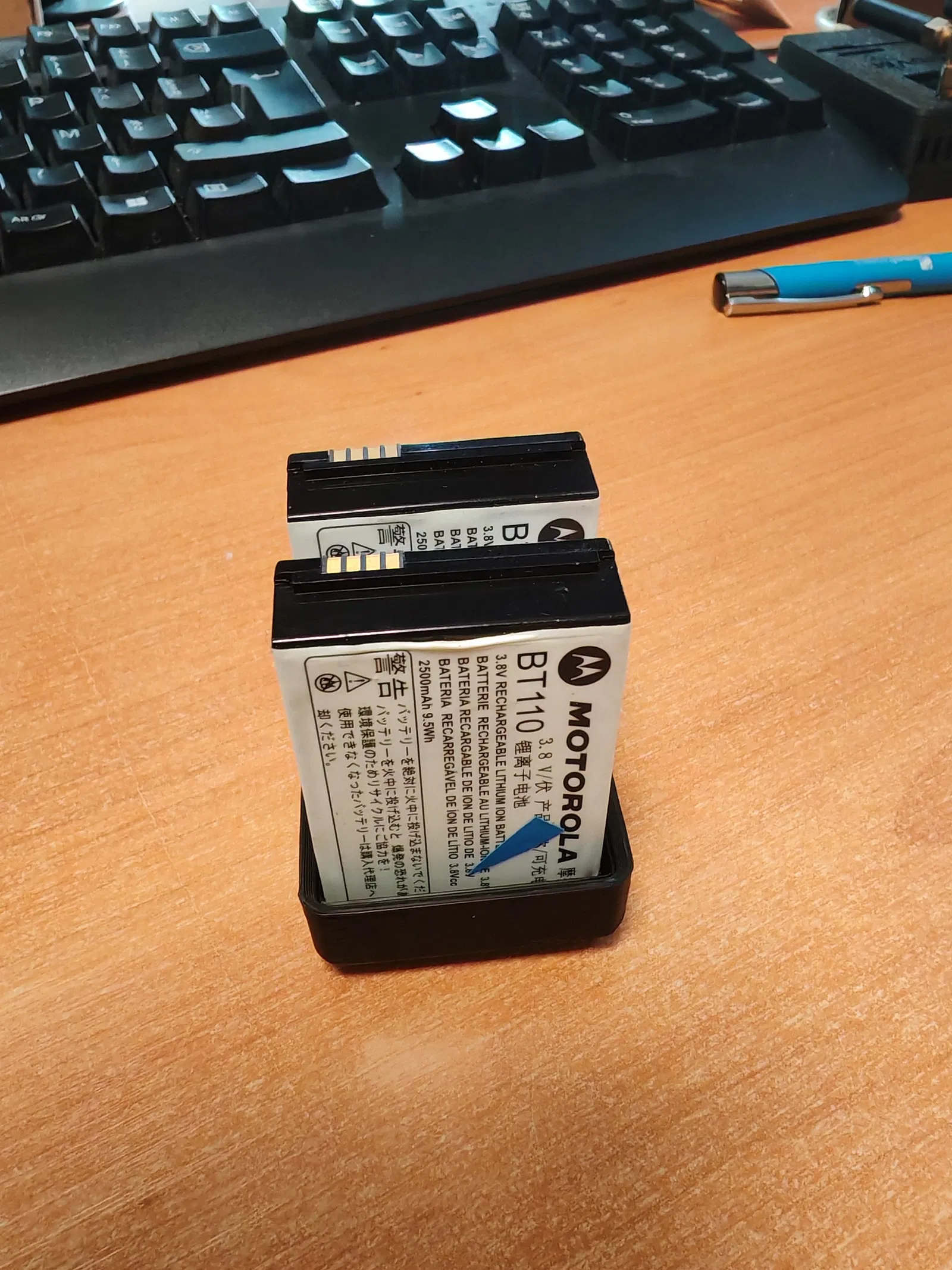 Thiết kế của khay được tối ưu hóa để chứa vừa vặn hai viên pin Motorola cùng lúc. Nhờ vào kích thước nhỏ gọn nhưng chắc chắn, bạn có thể tận dụng tối đa không gian lưu trữ mà vẫn đảm bảo pin luôn nằm đúng vị trí. Đây không chỉ là một phụ kiện in 3D đơn thuần, mà là một phần quan trọng để tối ưu hóa quy trình làm việc, giúp bạn tiết kiệm thời gian tìm kiếm dụng cụ mỗi khi cần thay pin cho thiết bị liên lạc.