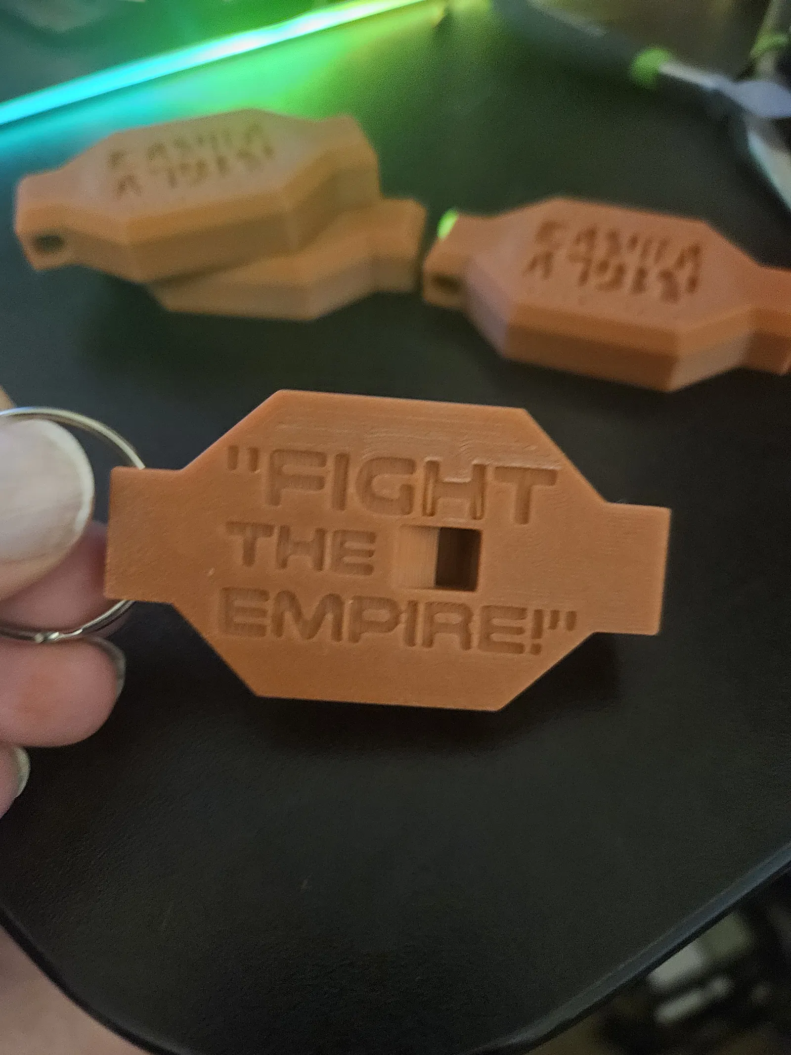 Thấy thích đúng không? Mời mình một ly cà phê hoặc ủng hộ các dự án khác của mình nhé! Hiện mình đang tạo một bản replica in 3D tỉ lệ 1:1 của Bia mộ Maarva trong phim Andor để dùng cho các hoạt động cộng đồng, và mình sẽ làm thêm 1-2 khuôn silicon để đúc ra các bản bê tông. Để bắt đầu, mình cần khoảng 250 đô để mua vật liệu làm khuôn silicon, bê tông, sợi gia cường và màu nhuộm. Mình có thể tự chi trả phần này, nhưng bất kỳ sự đóng góp nào cũng đều rất quý giá. Một khi đã có khuôn thì chi phí sản xuất sau này sẽ thấp hơn nhiều. Bản thiết kế sẽ được chia sẻ dưới dạng file 3D, đồng thời các bản đúc vật lý sẽ được quyên góp cho các nhóm hoạt động xã hội. Chúng được sử dụng một cách phi bạo lực như một phương tiện tận dụng văn hóa đại chúng, nhằm nhắc nhở mọi người về bộ mặt thật của các hệ thống độc tài bằng cách liên hệ với những câu chuyện như Andor — nơi phản ánh rõ nét quyền lực chuyên chế, tuyên truyền, đàn áp và sự kháng cự. Mình cũng có thể sẽ làm một video hướng dẫn để mọi người tự đúc bản sao của riêng mình. Mẹo in ấn: Mình khuyên bạn nên cân chỉnh dung sai và chất lượng chế độ "ironing" để làm mịn bề mặt trên cùng. Có những chữ cái rất nhỏ có thể bị mờ nếu không cài đặt kỹ. Mình đã dùng loại PLA màu gạch của CC3D trong các hình ảnh minh họa. Mình tin rằng văn hóa đại chúng là một công cụ để kháng cự. Những câu chuyện như Andor hay The Hunger Games có thể là hư cấu, nhưng chúng dựa trên những khái niệm phát xít và độc tài có thật trong lịch sử. Chúng cho thấy bộ mặt của các hệ thống chuyên chế, cách mà sự tuyên truyền, nỗi sợ hãi và bộ máy quan liêu dần bình thường hóa sự áp bức, cũng như cách mà những người bình thường chọn cách tiếp tay hoặc đứng lên chống lại chúng. Đó là lý do mình làm ra những chiếc còi này. Rất khó để xem bài diễn văn của Maarva trong tập cuối mùa 1 Andor, chứng kiến cuộc diễu hành trên Ferrix từ sự phản kháng lặng lẽ chuyển thành đối đầu trực diện, mà không thấy những nét tương đồng với lịch sử, thậm chí cả ở Mỹ ngày nay. Star Wars đã là một phần của văn hóa Mỹ suốt nhiều thập kỷ, và hầu như ai cũng đồng ý một sự thật cơ bản: Đế chế (Empire) là phe phản diện. Đúng không? Vì vậy, khi mọi người cổ vũ người dân Ferrix đứng lên chống lại Đế chế khi xem Andor, hay reo hò khi quân nổi dậy phá hủy Death Star, nhưng lại phớt lờ hoặc ủng hộ các lực lượng như ICE đối đầu với thường dân ngoài đời thực, thì sự mâu thuẫn đó trở nên khó mà bỏ qua được. Ngôn ngữ hình ảnh, sự mất cân bằng quyền lực, những lực lượng chức năng đeo mặt nạ giáp trụ đối đầu với cộng đồng dân thường, và cảnh người dân vùng lên phản kháng, tất cả đều làm sáng tỏ kiểu hệ thống độc tài mà Đế chế đại diện. Văn hóa đại chúng cho chúng ta một lăng kính rõ ràng để nhận diện những động thái đó, ngay cả khi người ta cố tình giả vờ rằng chúng khó nhận ra trong thực tế. Những chiếc còi này được tạo ra như một cách nhỏ bé, phi bạo lực để thu hẹp khoảng cách đó, nhắc nhở mọi người rằng những bài học trong phim không nên chỉ dừng lại trên màn ảnh. Chúng giúp chúng ta nhận diện sự độc tài ngoài đời thực và nhớ rằng chính những người bình thường mới là người quyết định liệu nó có tiếp tục tồn tại hay không. * > Tên tôi là Maarva Carrassi Andor. > > Tôi rất vinh dự được đứng đây trước mặt mọi người. Tôi vinh dự là một Người con của Ferrix, và xứng đáng với bia mộ này. > > Lạ thật, tôi… cảm giác như tôi có thể nhìn thấy nó. Tôi lên sáu, hình như thế, lần đầu tiên tôi chạm vào một bia mộ. Tôi nghe nhạc của chúng ta, cảm nhận lịch sử của chúng ta, nắm tay chị tôi khi chúng tôi đi bộ từ Quảng trường Fountain. Nơi các bạn đang đứng đây, tôi đã đến nhiều lần đến mức không đếm xuể. > > Tôi luôn muốn được nâng đỡ. Tôi luôn háo hức, luôn chờ đợi để được truyền cảm hứng. Tôi nhớ mỗi khi điều đó xảy ra, mỗi khi người chết nâng đỡ tôi… bằng sự thật của họ. Và giờ tôi đã chết, tôi khao khát được nâng đỡ các bạn. Không phải vì tôi muốn tỏa sáng hay được nhớ đến. Mà vì tôi muốn các bạn tiếp tục tiến lên. Tôi muốn Ferrix tiếp tục tồn tại. Trong những giờ phút cuối đời, đó là điều an ủi tôi nhất. > > Nhưng tôi sợ cho các bạn. Chúng ta đã ngủ quên. Chúng ta có nhau, có Ferrix, có công việc, có những ngày tháng của mình. Chúng ta có nhau và họ để chúng ta yên. Chúng ta giữ cho giao thương thông suốt, họ để chúng ta yên. Chúng ta cầm tiền của họ và phớt lờ họ, chúng ta vẫn để guốc máy của họ vận hành, và ngay khi họ rời đi, chúng ta quên sạch họ. (THỞ DÀI) Vì chúng ta có nhau. Chúng ta có Ferrix. > > Nhưng chúng ta đã ngủ quên. Tôi đã ngủ quên. Và tôi đã quay lưng