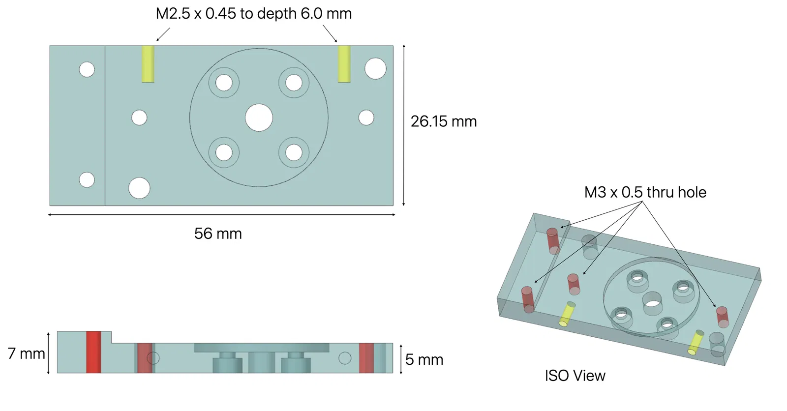 - Máy phay CNC 3 trục: Các chi tiết cấu trúc vẫn dùng nhôm. Nếu không tự làm được, bạn hãy đặt dịch vụ qua SendCutSend/JLCPCB/PCBWAY/Fathom. Mình đã đính kèm 2 tấm ảnh cuối, bất kỳ xưởng cơ khí nào cũng có thể báo giá dựa trên đó và file STP. Giá chắc chỉ khoảng 30 USD, và bạn cũng đỡ tốn tiền mua mũi taro. Hoặc bạn có thể khoan lỗ rộng ra và in bằng nhựa Nylon/PC.