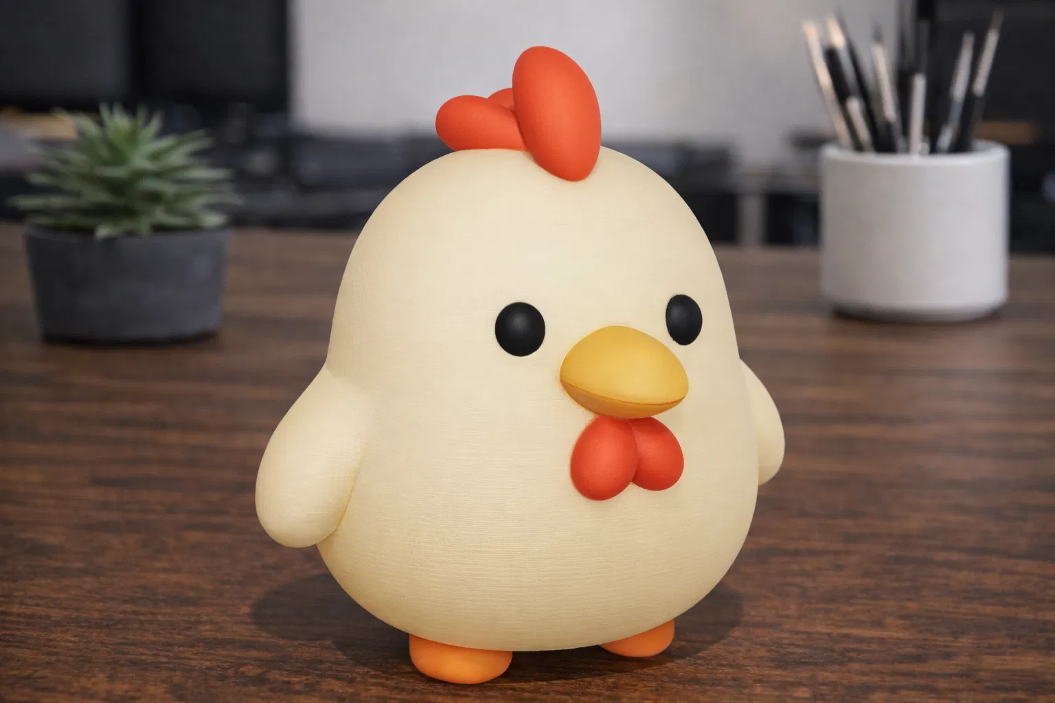 Sản phẩm này rất tuyệt vời để làm vật trang trí bàn làm việc, mô hình sưu tầm hoặc dự án sơn màu. Sau khi in xong, bạn có thể sơn thêm để làm nổi bật phần mỏ, mào và các chi tiết nhỏ của chú gà.