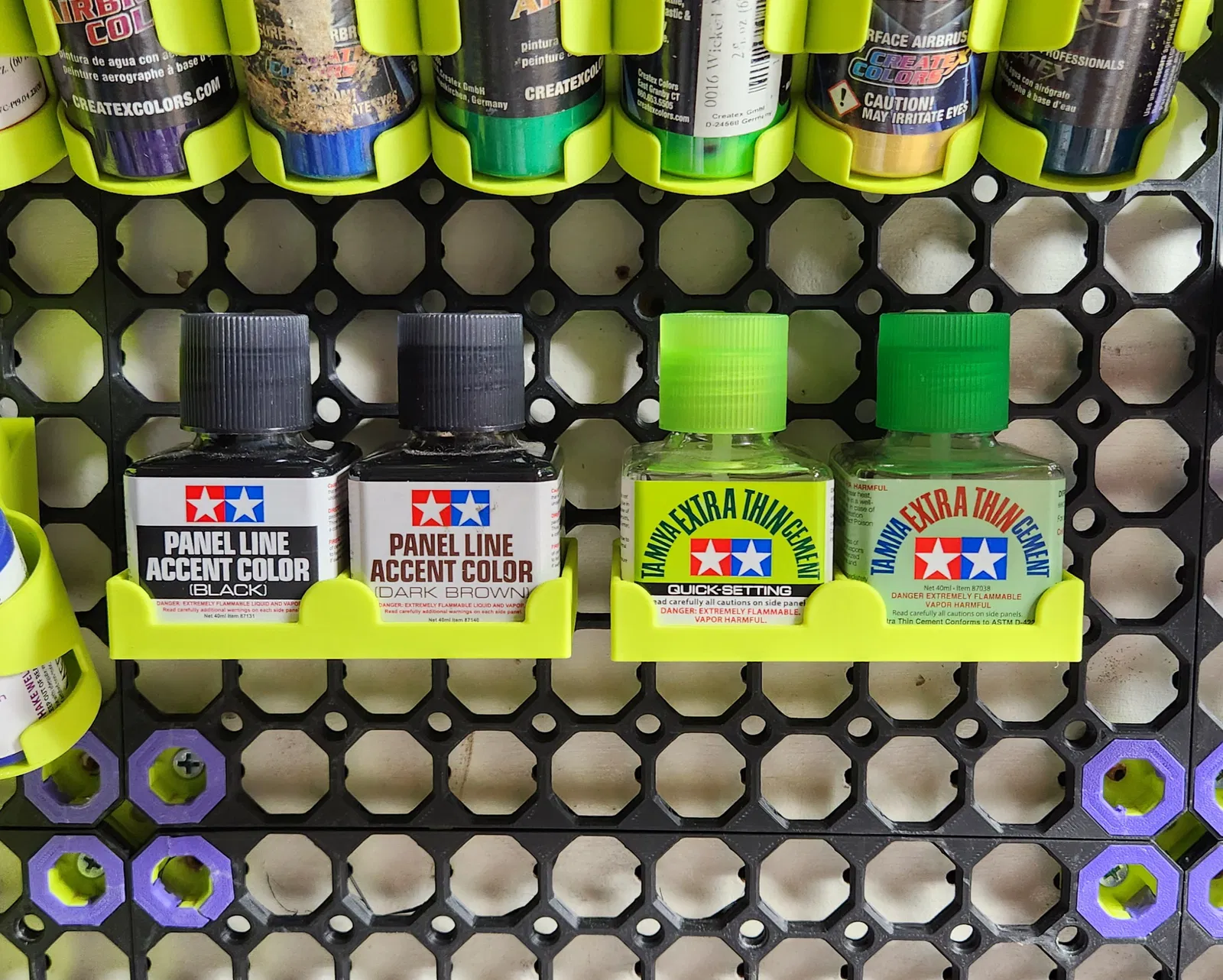 Mình thiết kế mấy cái giá đỡ này để đựng keo Tamiya và mấy chai màu Panel Line accent của mình. Có sẵn model cho loại đựng một chai và loại đựng hai chai luôn nha.