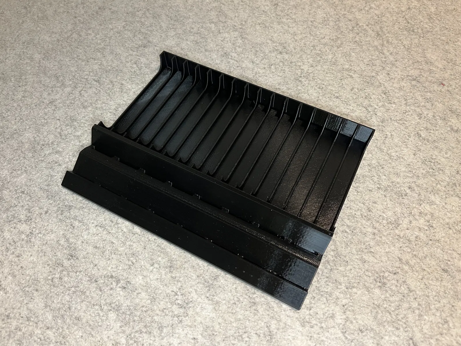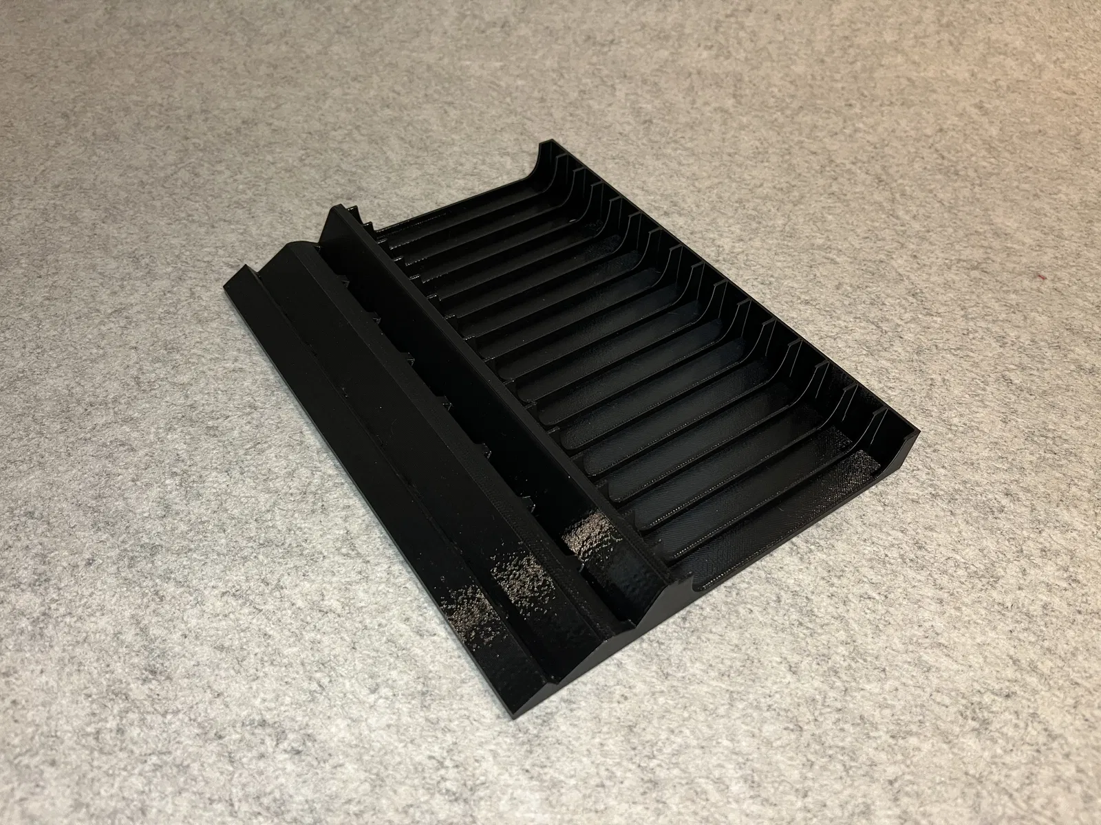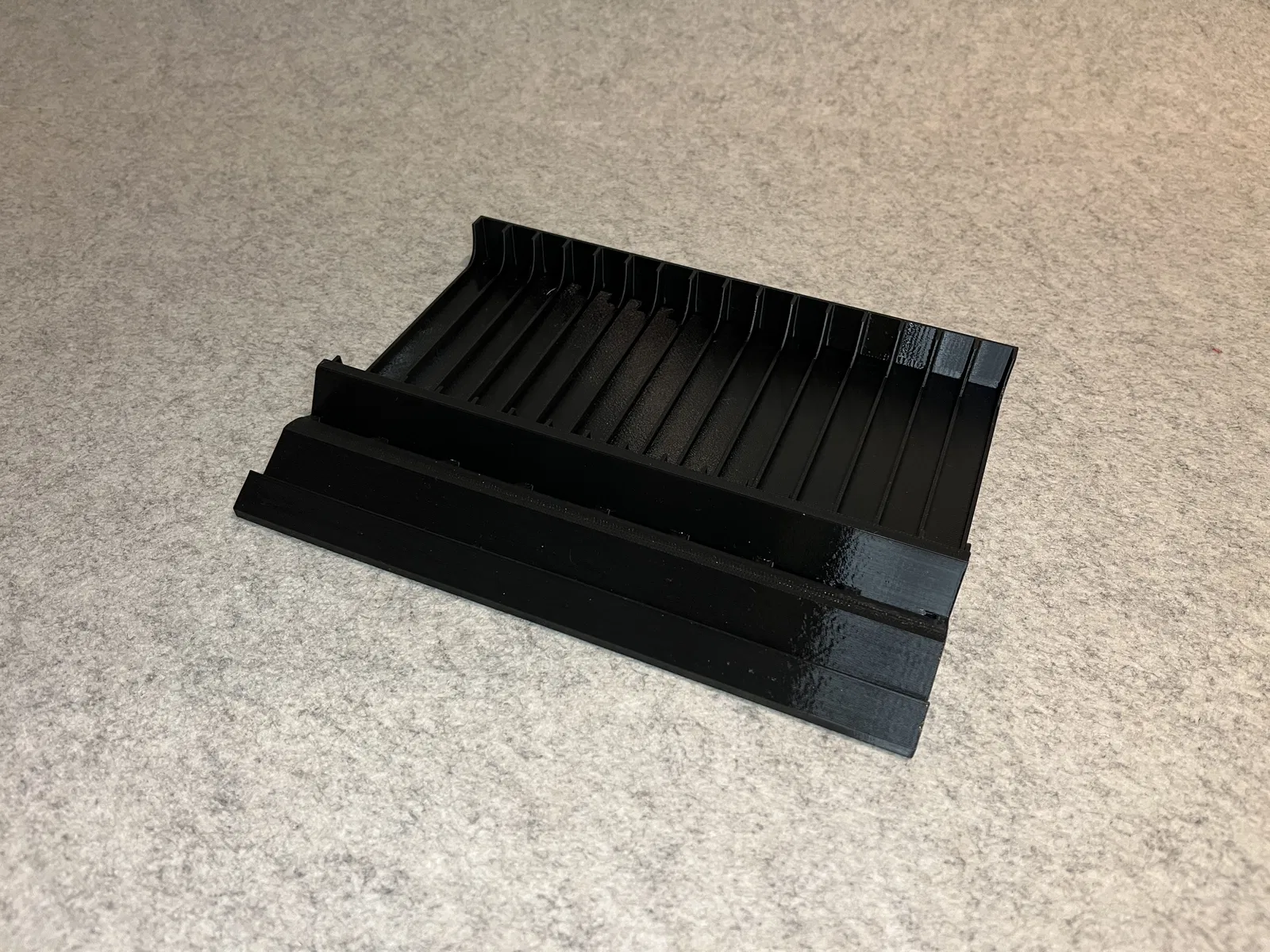 Bạn đang sở hữu nhiều đĩa game Nintendo Switch và muốn sắp xếp chúng gọn gàng? Mẫu kệ in 3D này là lựa chọn lý tưởng dành cho bạn. Được thiết kế với kích thước 218 x 164 x 24mm, chiếc kệ này có khả năng chứa tới 16 hộp đĩa game tiêu chuẩn và thêm 16 vị trí cắm băng game riêng biệt ở phía trước. Đây là một món phụ kiện không thể thiếu để góc chơi game của bạn trở nên ngăn nắp và chuyên nghiệp hơn. Với cấu trúc chắc chắn và dễ in, bạn có thể dễ dàng tự tạo ra sản phẩm này tại nhà bằng máy in 3D với nhựa PLA thông dụng. Thiết kế dạng bậc thang thông minh giúp việc lấy game trở nên nhanh chóng và tiện lợi hơn bao giờ hết, đồng thời bảo vệ tốt nhất cho bộ sưu tập game của bạn khỏi hư hại hoặc thất lạc.