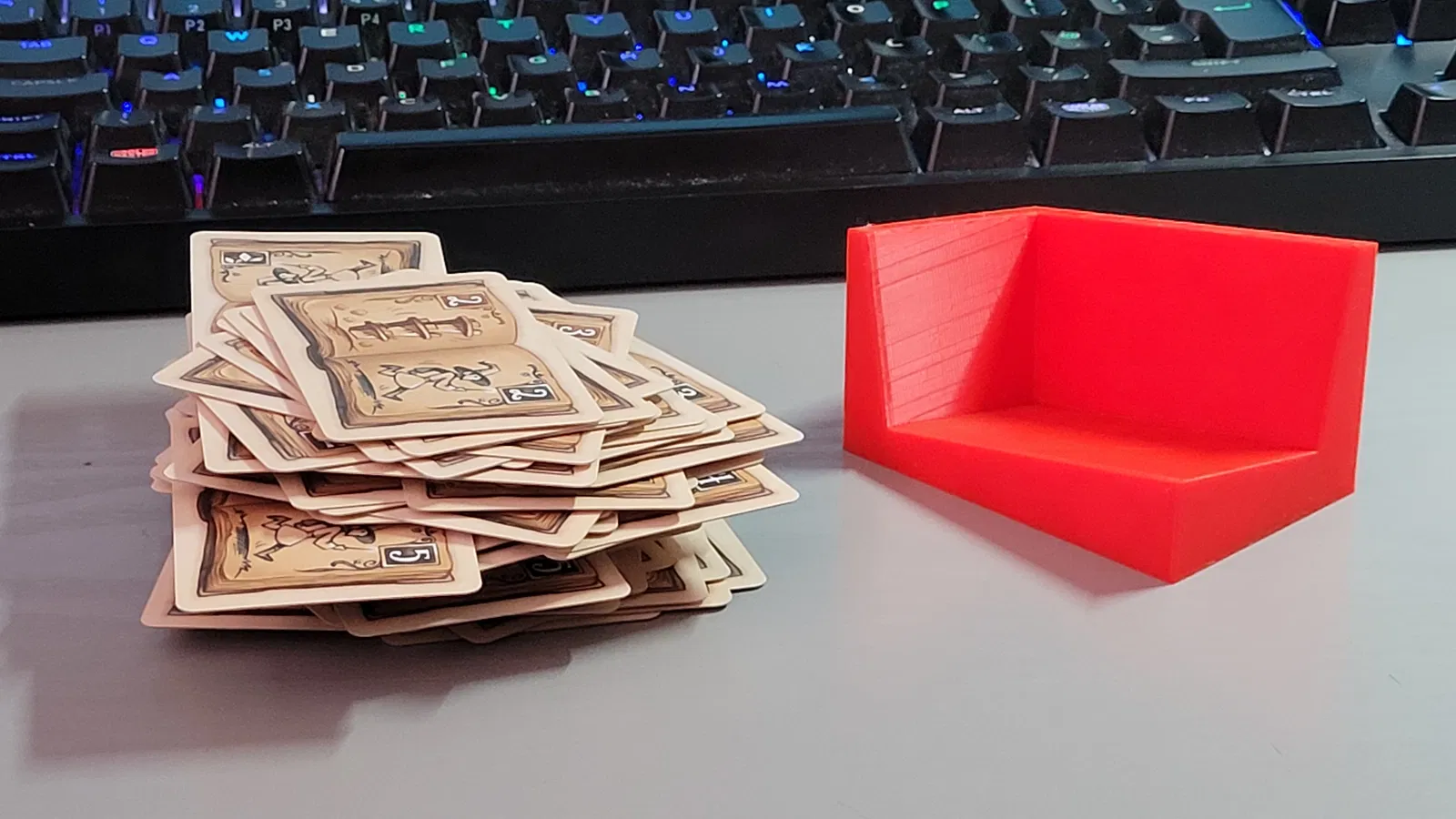 Bạn có thấy phiền khi cứ phải gom các chồng bài rút hoặc bài bỏ sau mỗi ván game yêu thích không? Khay đựng này sử dụng cơ chế trọng lực để giữ cho chồng bài luôn gọn gàng, giúp bạn rút bài hoặc đặt bài vào một cách dễ dàng và ngăn nắp trong suốt quá trình chơi. Thật lòng mà nói, trên Printables có nhiều mẫu khay đựng bài đẹp mắt hơn, nhưng mình thiết kế cái này vì nó cực kỳ linh hoạt, dùng được cho rất nhiều kích thước thẻ bài khác nhau.