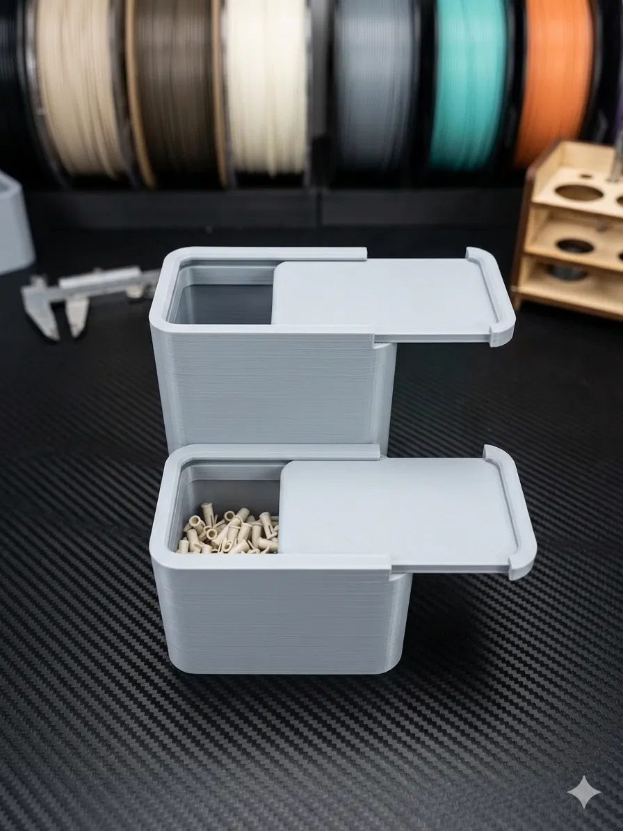 Bạn đang cần tìm giải pháp lưu trữ thông minh và tiết kiệm không gian? Mẫu hộp đựng đồ có nắp trượt (Slide Box) và khả năng xếp chồng (Stacking Box) này là lựa chọn tuyệt vời cho mọi góc làm việc. Với thiết kế tinh tế, nắp trượt linh hoạt và cấu trúc vững chắc, sản phẩm giúp bạn quản lý các linh kiện nhỏ, dụng cụ làm việc một cách ngăn nắp và khoa học. Sản phẩm gồm hai kích thước phổ biến, dễ dàng in bằng máy in 3D tại nhà. Đây là giải pháp lưu trữ DIY cực kỳ hữu ích, giúp bạn tận dụng tối đa diện tích bàn làm việc, giữ cho không gian luôn gọn gàng và chuyên nghiệp. Sản phẩm phù hợp với nhựa PLA và là dự án lý tưởng cho cộng đồng yêu thích in 3D.