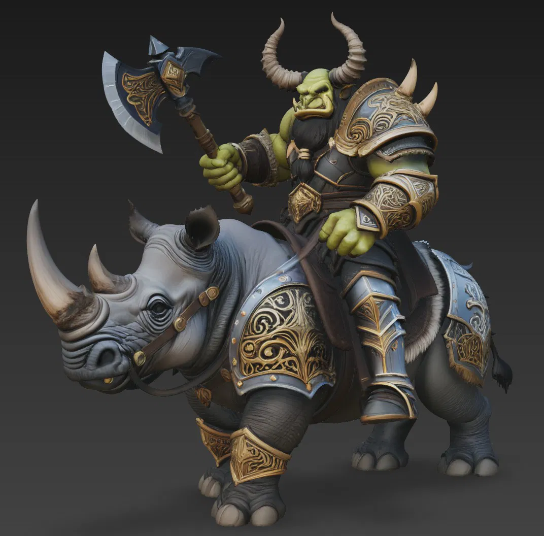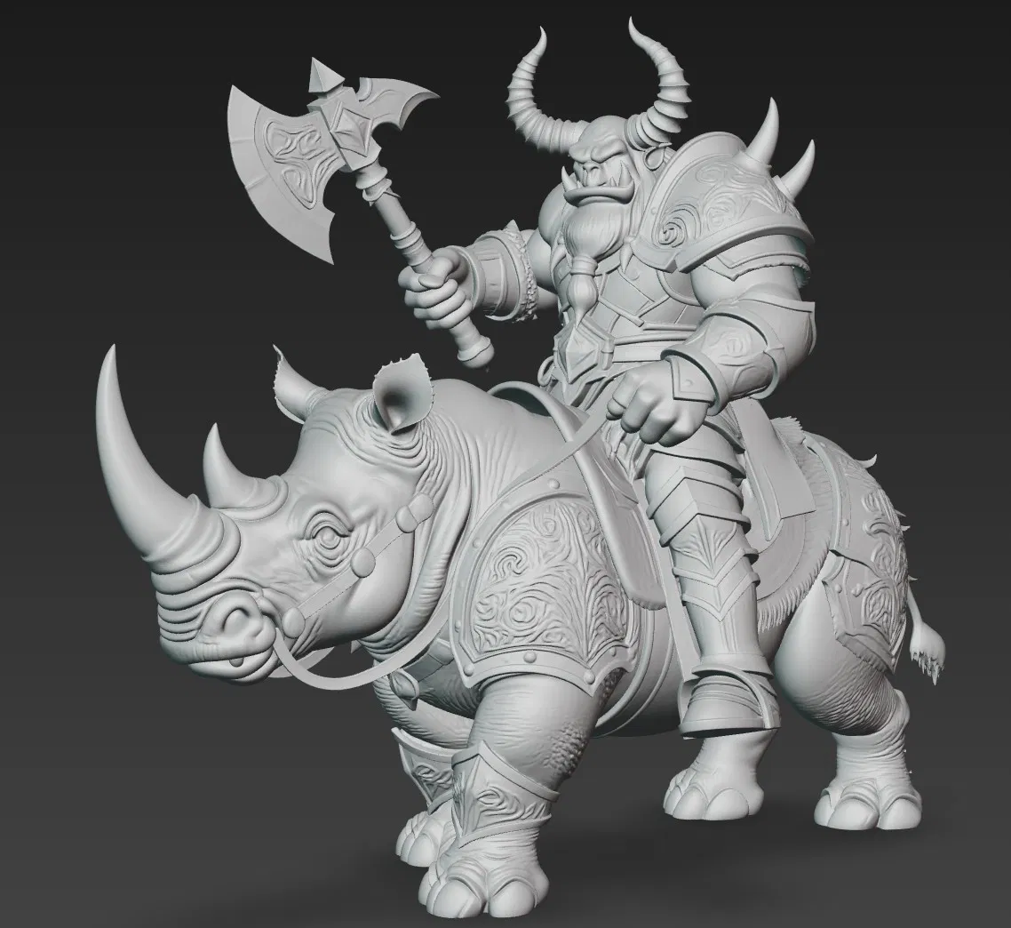 Mô hình Ogre chiến binh cưỡi tê giác in 3D chi tiết cực đẹp