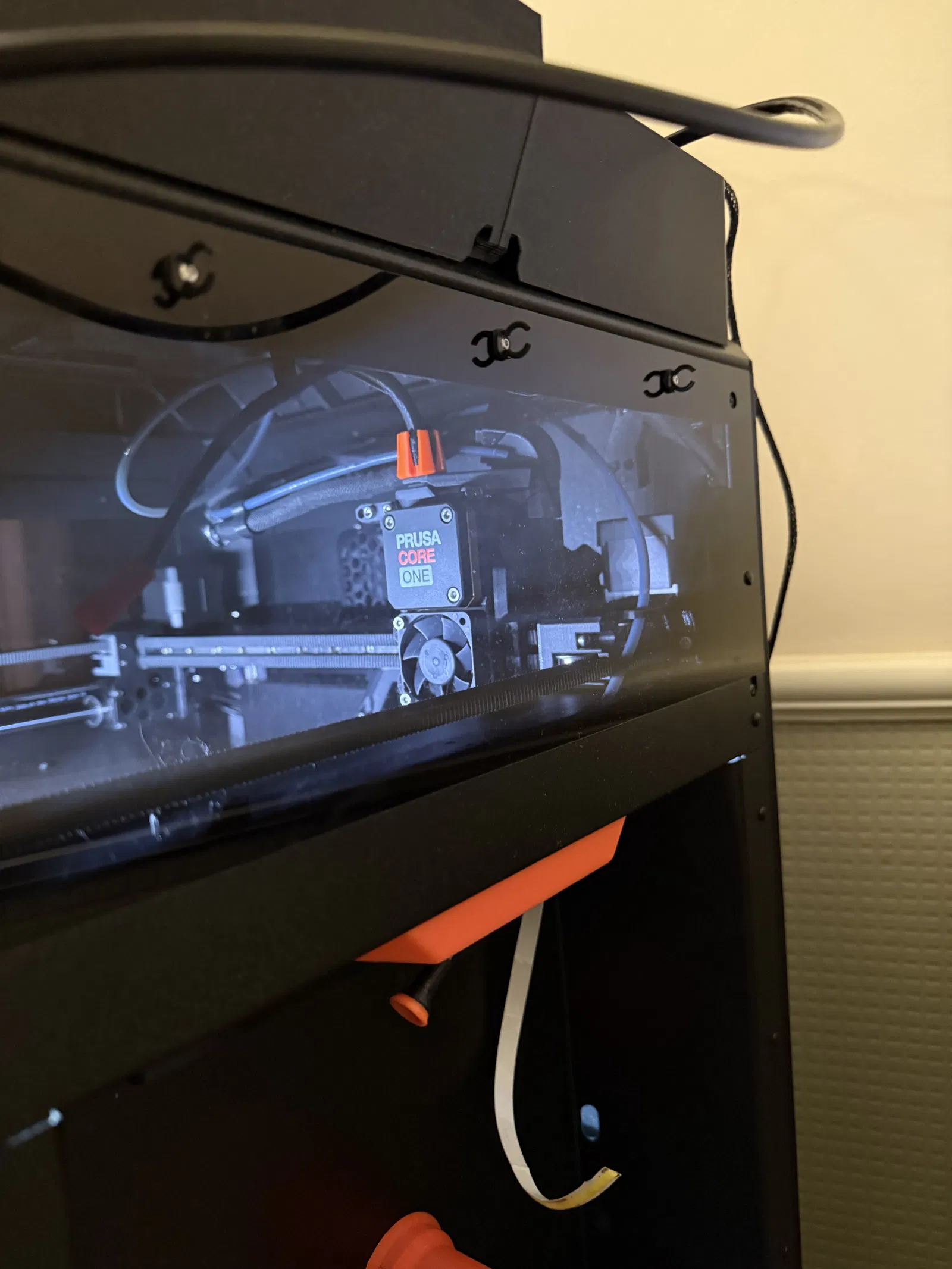 Đây là một kẹp cáp đơn giản được thiết kế để tận dụng các chốt nhựa (rivets) có sẵn trên máy in CoreOne, giúp bạn quản lý dây cáp gọn gàng hơn.