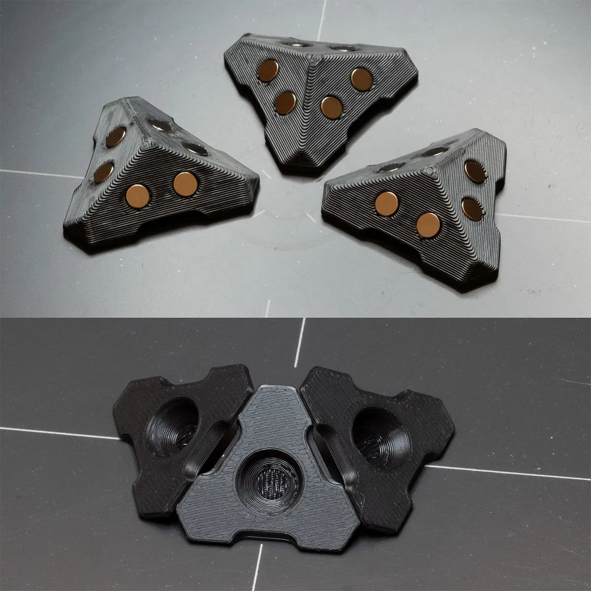 Các khe cắm nam châm được thiết kế dạng nhấn vừa khít (press-fit), nhưng mình khuyên bạn nên thêm một giọt keo CA để đảm bảo chúng không bị rơi ra ngoài!