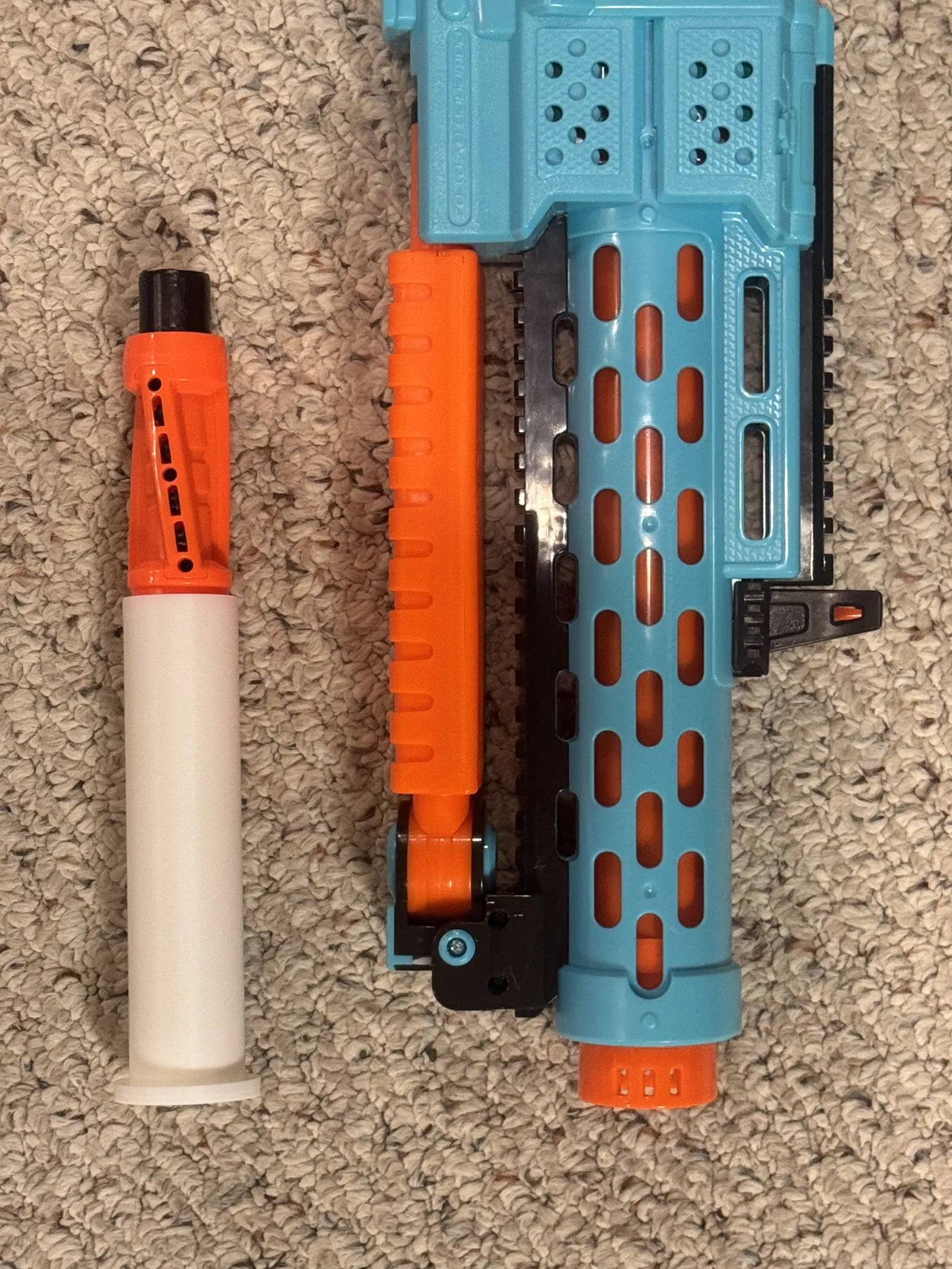 Tôi chỉ thiết kế dựa trên BCAR của X-Shot đi kèm với piston pump cơ, nên tôi chưa thử nghiệm độ tương thích với các loại BCAR khác và hầu hết các loại BCAR khác sẽ không tương thích.