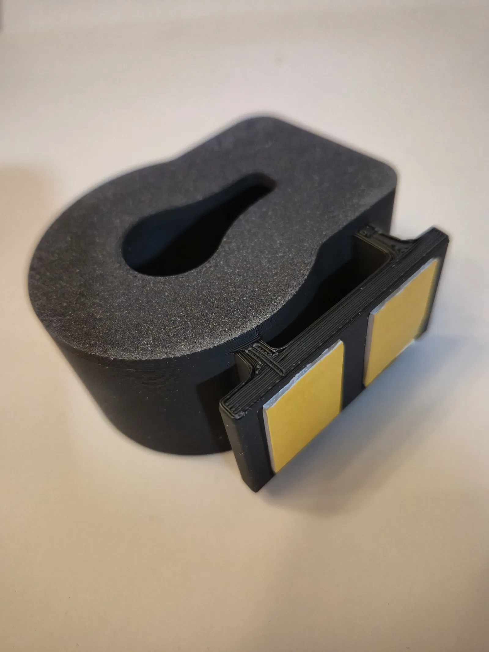 • **Lắp đặt dễ dàng: Mặt lưng phẳng được thiết kế tối ưu cho băng dính hai mặt (ví dụ: 3M VHB), giúp bạn có thể dán lên gạch, tủ bếp hoặc ngay cạnh máy mà không cần khoan đục.
