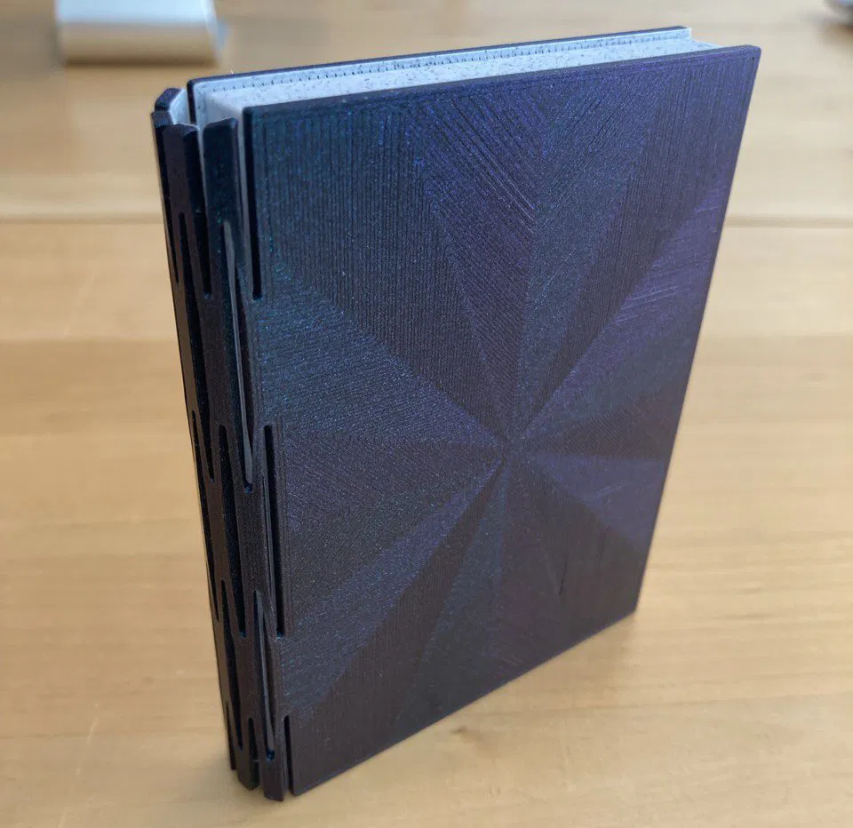 Cuốn spellbook là một mẫu riêng biệt - cái này chỉ là miếng insert spell tracker và các thanh đếm (tabs) thôi nhé. Nếu bạn có in cuốn spellbook, mình khuyên chân thành là hãy đổi kiểu infill đáy thành Octogram Spiral hoặc Hilbert Curve trong Prusaslicer để tạo ra hoa văn cực kỳ đẹp mắt.