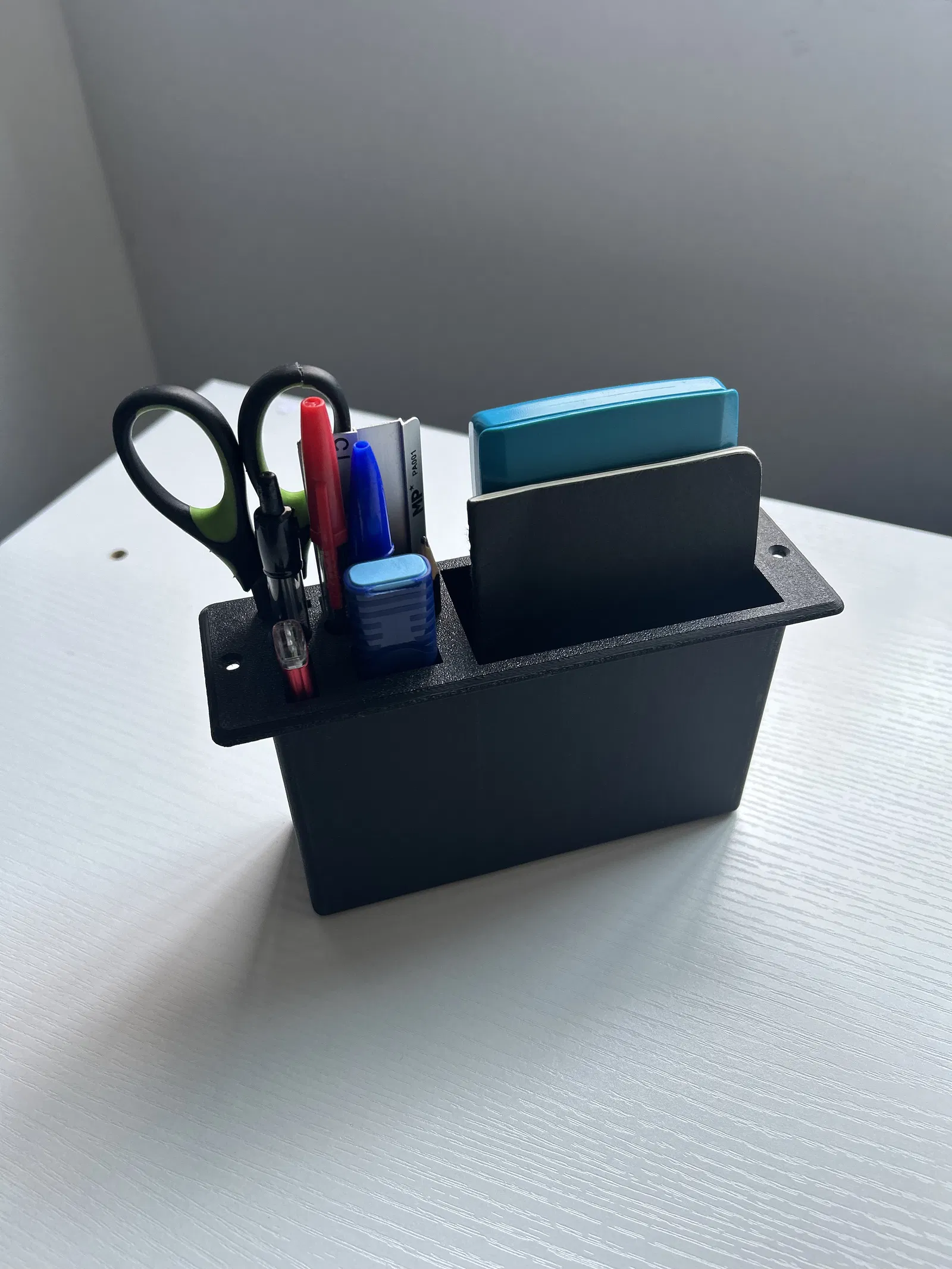 In và cố định ống cắm bút bằng hai chiếc vít vừa chuẩn bị.
