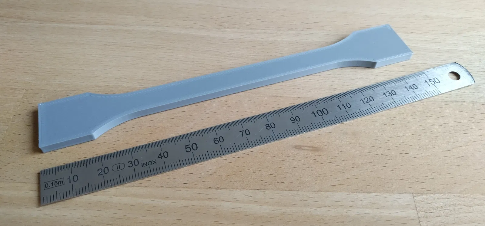 Thiết kế của mẫu có hình dạng chuẩn dạng xương chó với chiều dài tổng thể 150mm, phần thân chịu lực có chiều rộng 10mm và độ dày 4mm. Hình dáng này giúp tập trung ứng suất vào phần giữa của mẫu, đảm bảo kết quả kiểm tra được chính xác và nhất quán nhất theo yêu cầu kỹ thuật. Việc tự in các mẫu thử này giúp bạn tiết kiệm được chi phí thay vì phải mua các bộ mẫu thử thương mại đắt tiền, đồng thời cho phép bạn linh hoạt thử nghiệm mọi loại vật liệu bạn đang có sẵn trong xưởng.