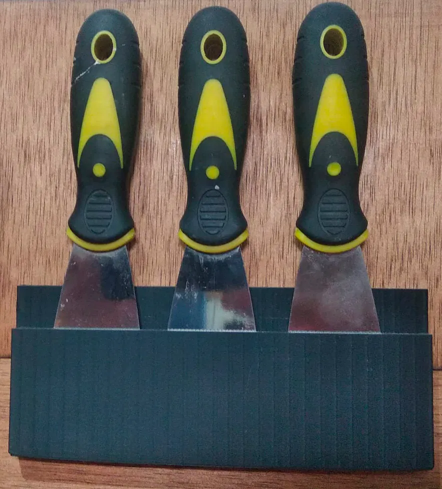 Đối với những ai thường xuyên làm việc trong xưởng hoặc tự tay sửa chữa đồ đạc trong nhà, việc quản lý các dụng cụ cầm tay như dao trét bột (spatula) luôn là một vấn đề nhỏ nhưng gây khó chịu. Bộ giá treo thông minh này được thiết kế chuyên biệt để giữ cố định ba chiếc dao trét bột của bạn một cách gọn gàng, ngăn nắp. Thay vì để chúng nằm bừa bãi trên bàn làm việc, bạn có thể cắm chúng vào giá, giúp không gian làm việc trở nên chuyên nghiệp và an toàn hơn đáng kể.