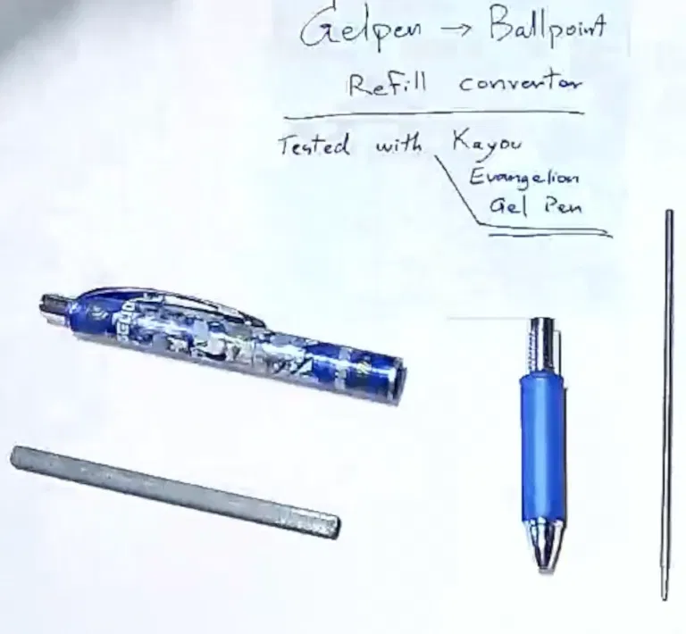 Bút gel viết rất êm nhưng đôi khi lại không phù hợp với các loại giấy tờ pháp lý, vốn thường yêu cầu bắt buộc dùng bút bi. Mực bút bi là mực dầu, không thấm nước và cần lực ấn khi viết, điều này rất quan trọng đối với các loại giấy tờ cần độ bền lâu dài. Tôi làm bộ chuyển đổi này để vẫn có thể tận dụng thân bút gel yêu thích của mình với loại mực mà công việc yêu cầu.
