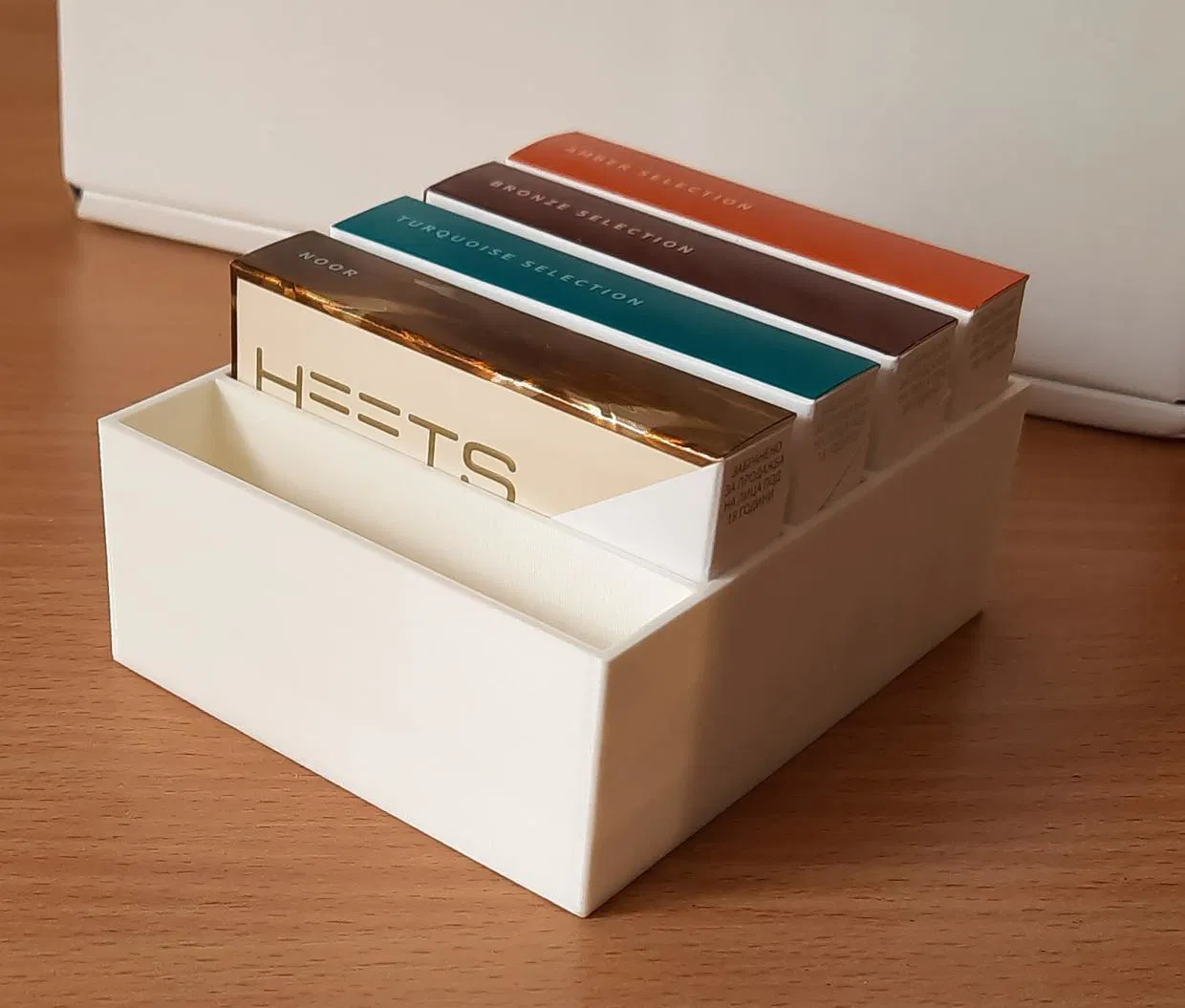 Mẫu thiết kế giá đỡ hoặc hộp đựng tiện lợi dành cho các bao thuốc HEETS (IQOS) để đặt trên bàn làm việc. Tích hợp sẵn tệp OpenSCAD cho phép bạn dễ dàng tùy chỉnh số lượng bao, kiểu sắp xếp ngang hoặc dọc theo nhu cầu sử dụng.