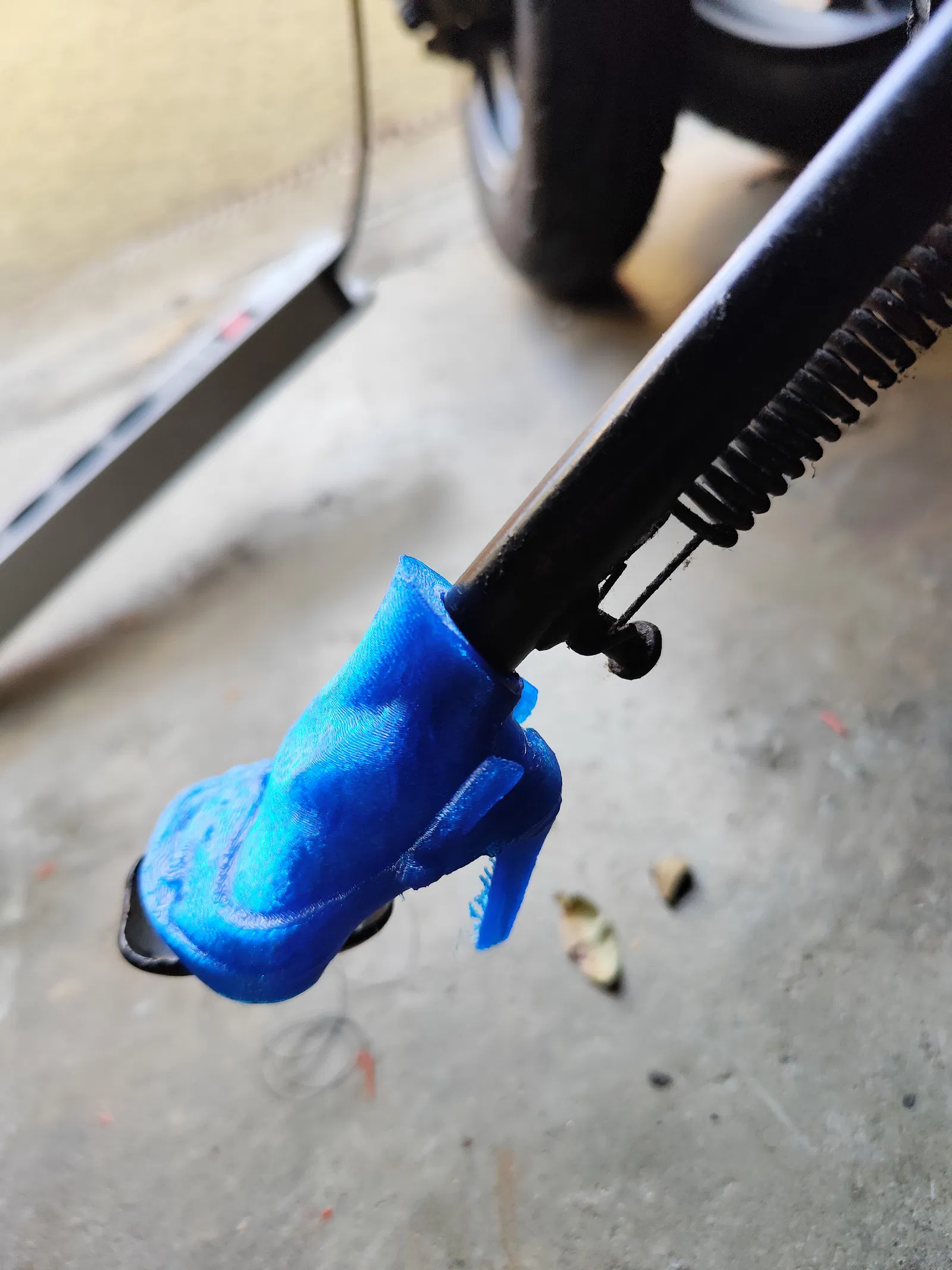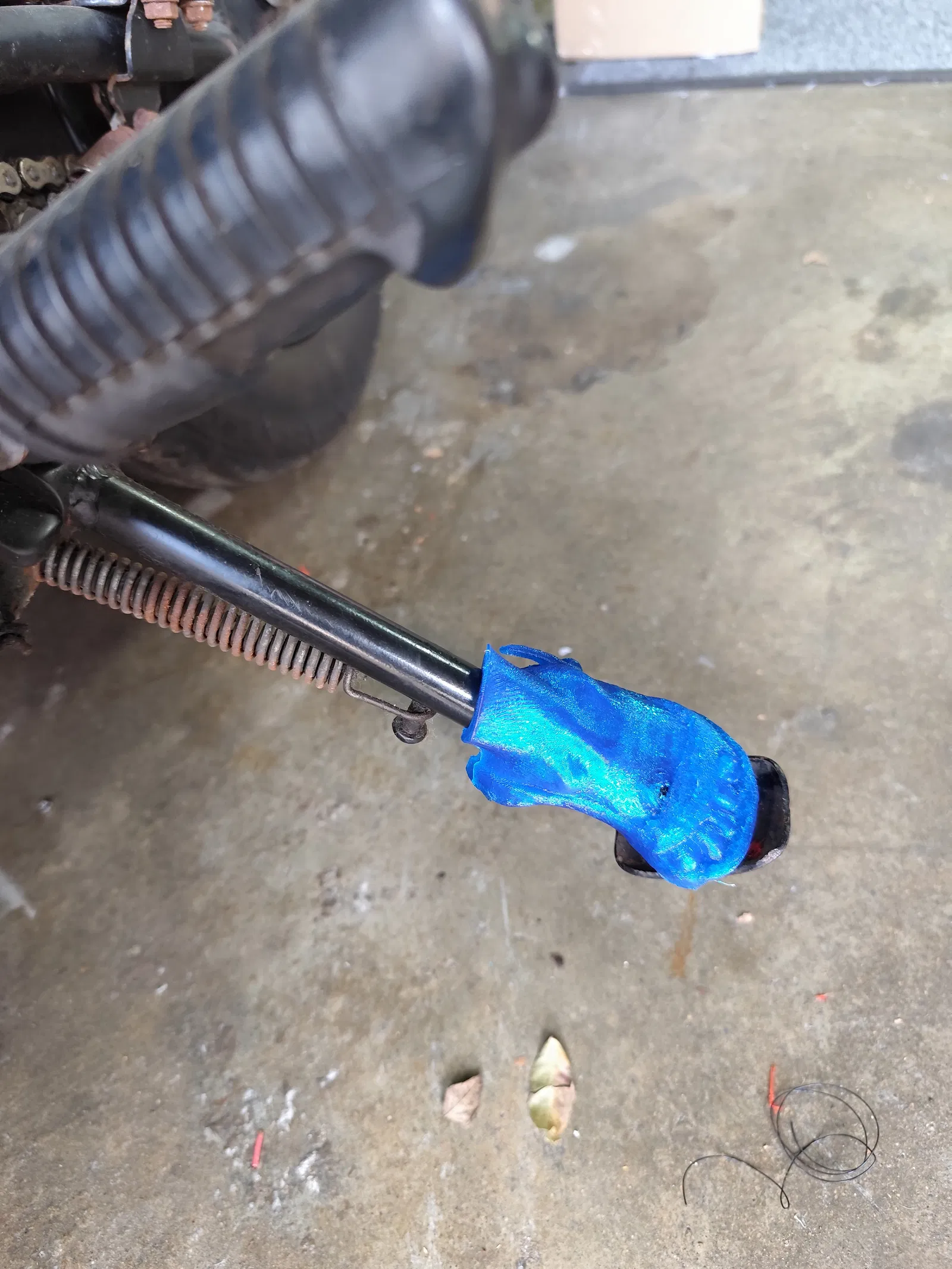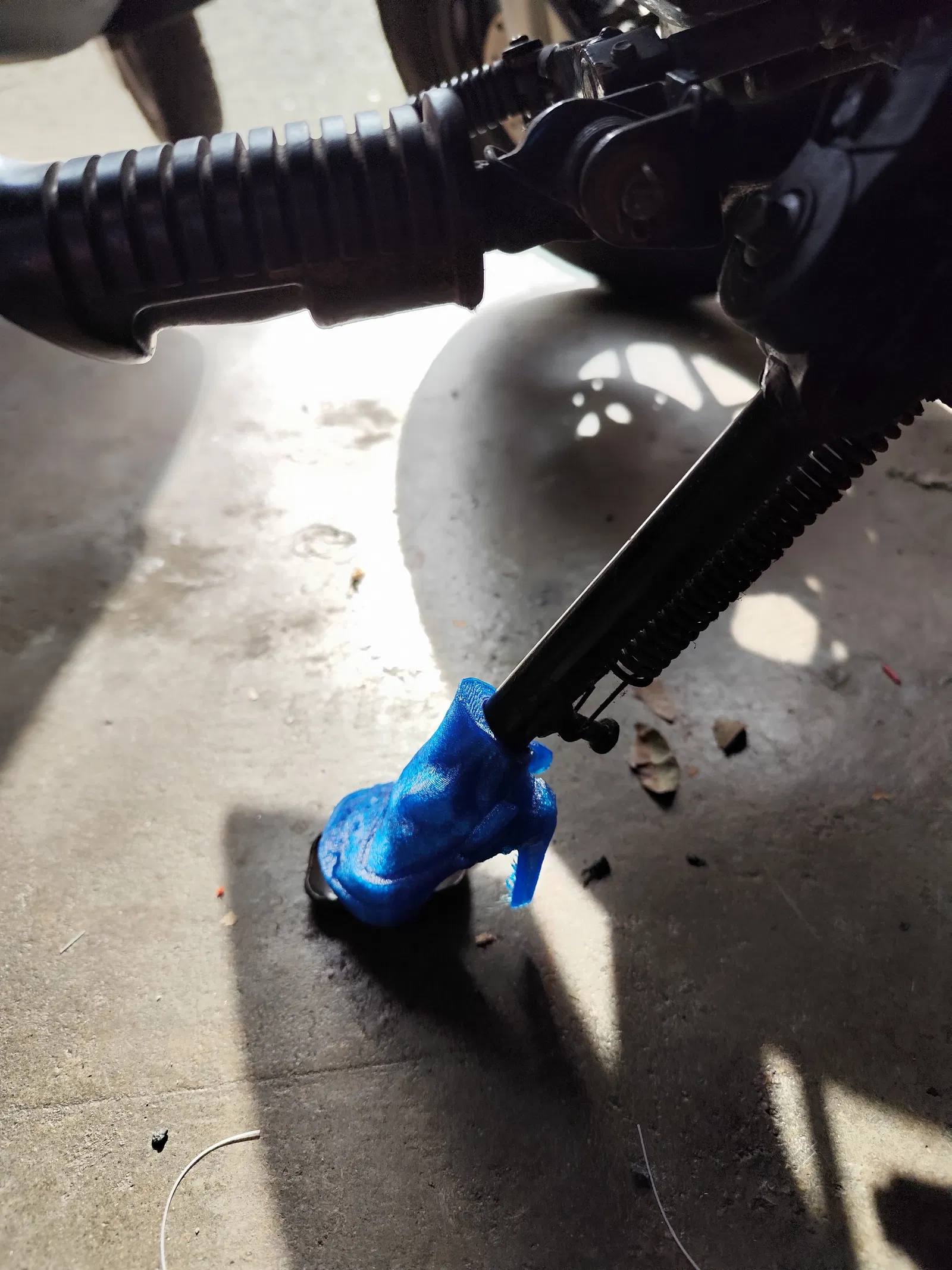 Thiết kế này chưa thực sự hoàn hảo và mình chỉnh góc hơi lệch một chút, nên có lẽ bạn sẽ cần tinh chỉnh lại để khớp với chân chống xe của mình nhé.