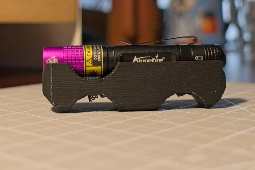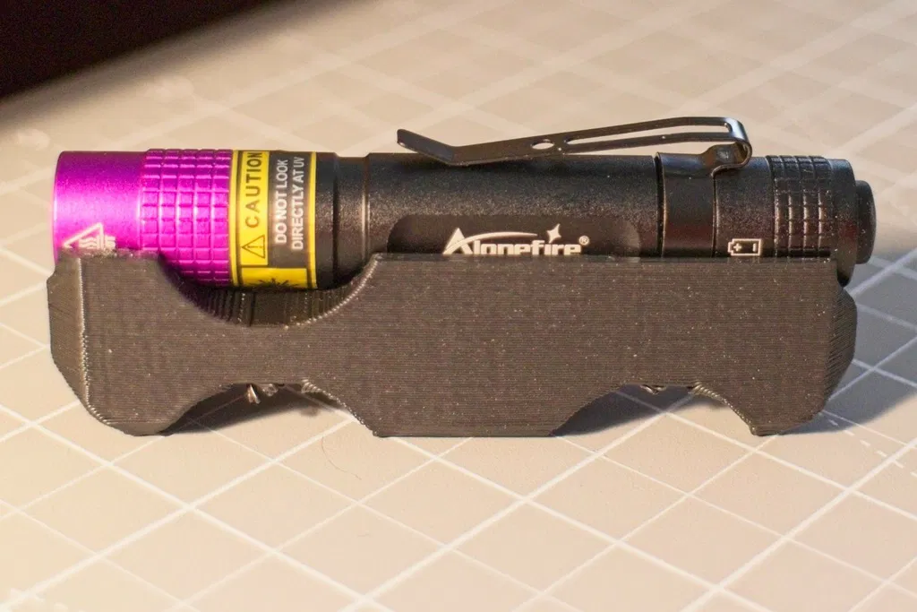 Đây là giá đỡ dành cho đèn pin UV Alonefire SV62 Mini 3W. Mẫu thiết kế này được tích hợp sẵn một lỗ để gắn ốc cấy (threaded insert) kích thước 1/4"-20, giúp bạn dễ dàng lắp đèn lên chân máy (tripod). Loại ốc cấy này được dùng cho đồ nội thất gỗ và không phải loại nung nhiệt (heat-set). Bạn có thể tìm mua đèn pin tại đây: https://a.co/d/08zIDRHi. Ốc cấy có thể tìm mua tại đây: https://a.co/d/07eqA6JG.