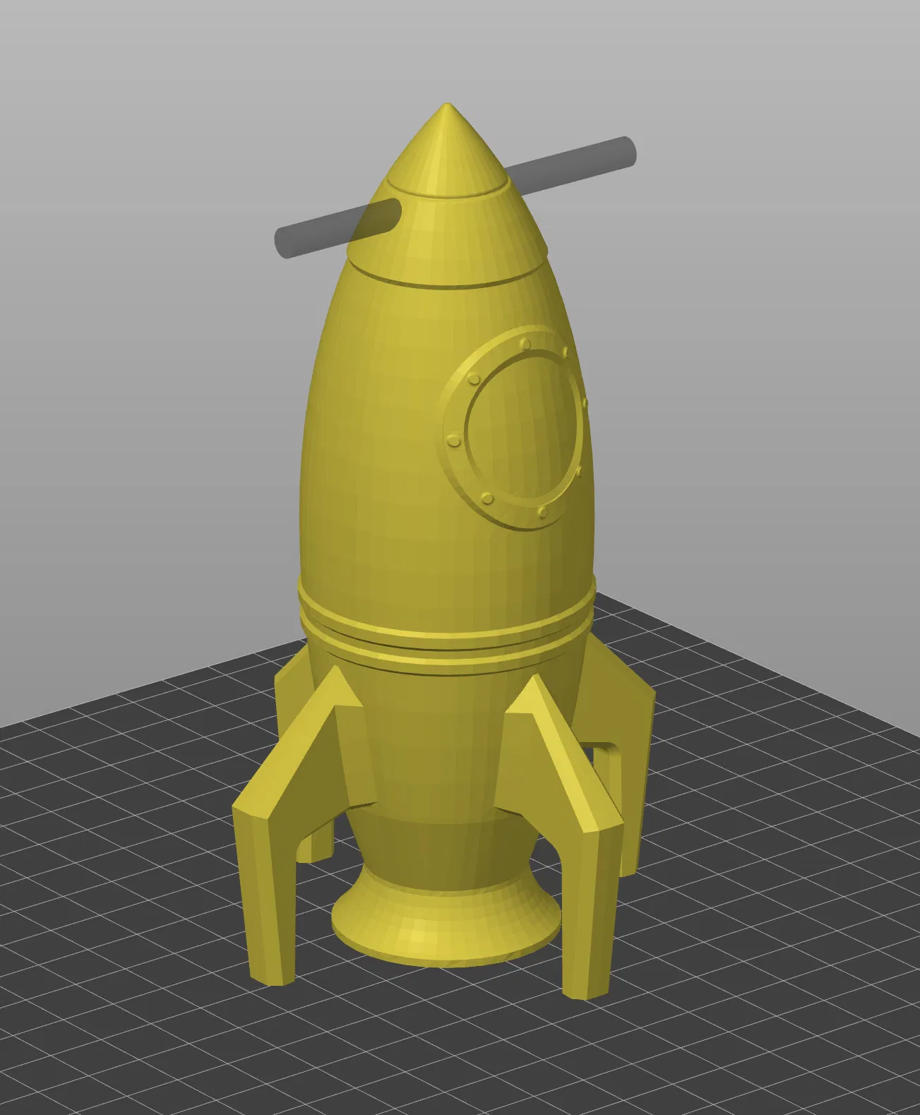 Bạn đang tìm kiếm một món đồ trang trí thú vị cho bàn làm việc? Hãy thử ngay mẫu tên lửa hoạt hình siêu dễ thương này. Với thiết kế nhỏ gọn, đường nét mềm mại và một lỗ hổng tiện lợi ở phần chóp, đây là một dự án in 3D tuyệt vời cho cả người mới bắt đầu lẫn những tay chơi chuyên nghiệp. Bạn có thể dễ dàng in mô hình này bằng nhựa PLA để tạo ra món quà nhỏ nhắn dành tặng cho các bé hoặc làm vật trang trí đầy cảm hứng khám phá không gian trên kệ sách. Hãy cùng bắt tay vào in và sáng tạo thêm nhiều màu sắc cho chú tên lửa này ngay hôm nay nhé!