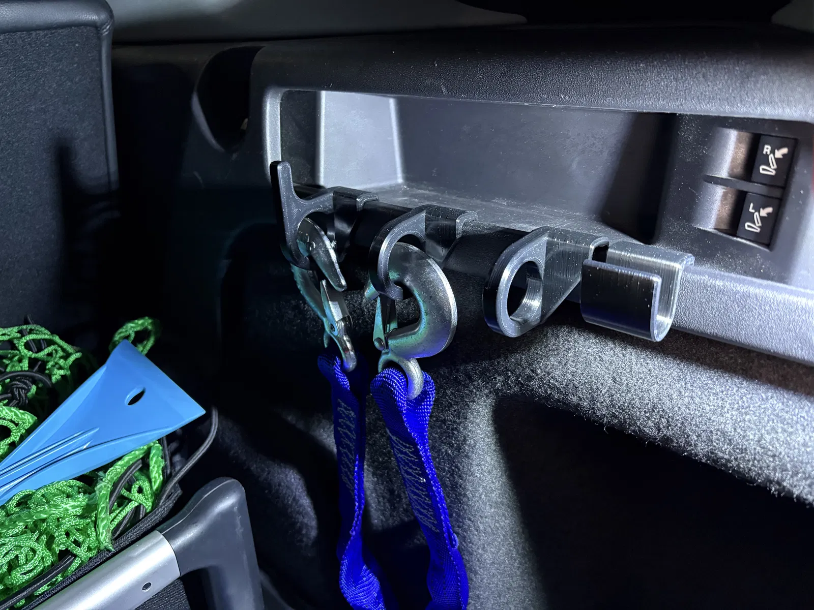 Sản phẩm này được thiết kế chuyên biệt để bám chặt vào phần khung nhựa trong khoang hành lý của Land Rover, tạo điểm tựa vững chãi để móc các loại dây chằng hoặc túi đựng đồ. Việc lắp đặt cực kỳ đơn giản, chỉ cần kẹp vào vị trí phù hợp trong cốp là xong, không cần phải khoan đục hay can thiệp vào cấu trúc zin của xe. Đây là giải pháp cực kỳ hữu ích cho những chuyến đi xa, giúp không gian cốp sau trở nên ngăn nắp và khoa học hơn hẳn.