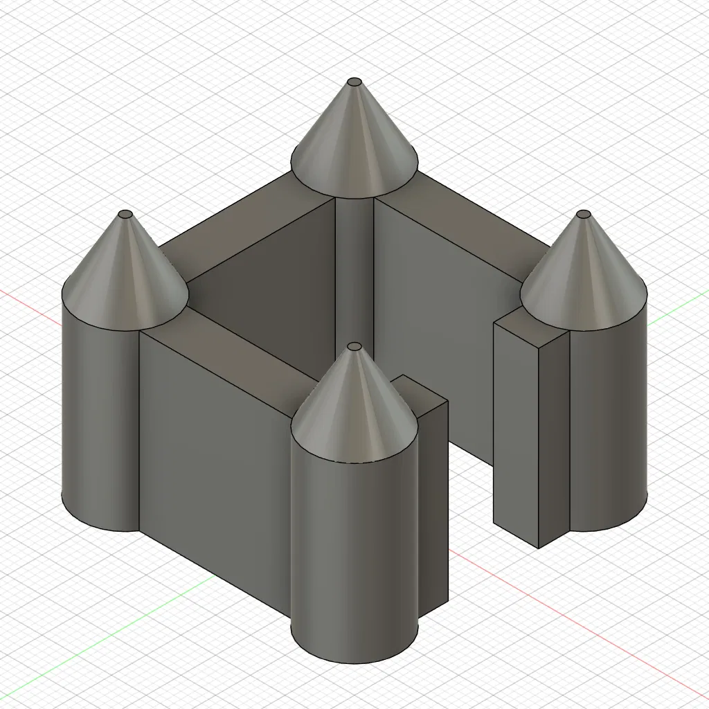 Con gái mình cần vài mô hình lâu đài mẫu cho bài tập ở trường. Lâu đài này in rất dễ. Phần tường bên ngoài tạo thành một hình vuông 4x4 cm. Kích thước tổng thể là 46x46 mm. In rất mượt mà, không cần dùng support.