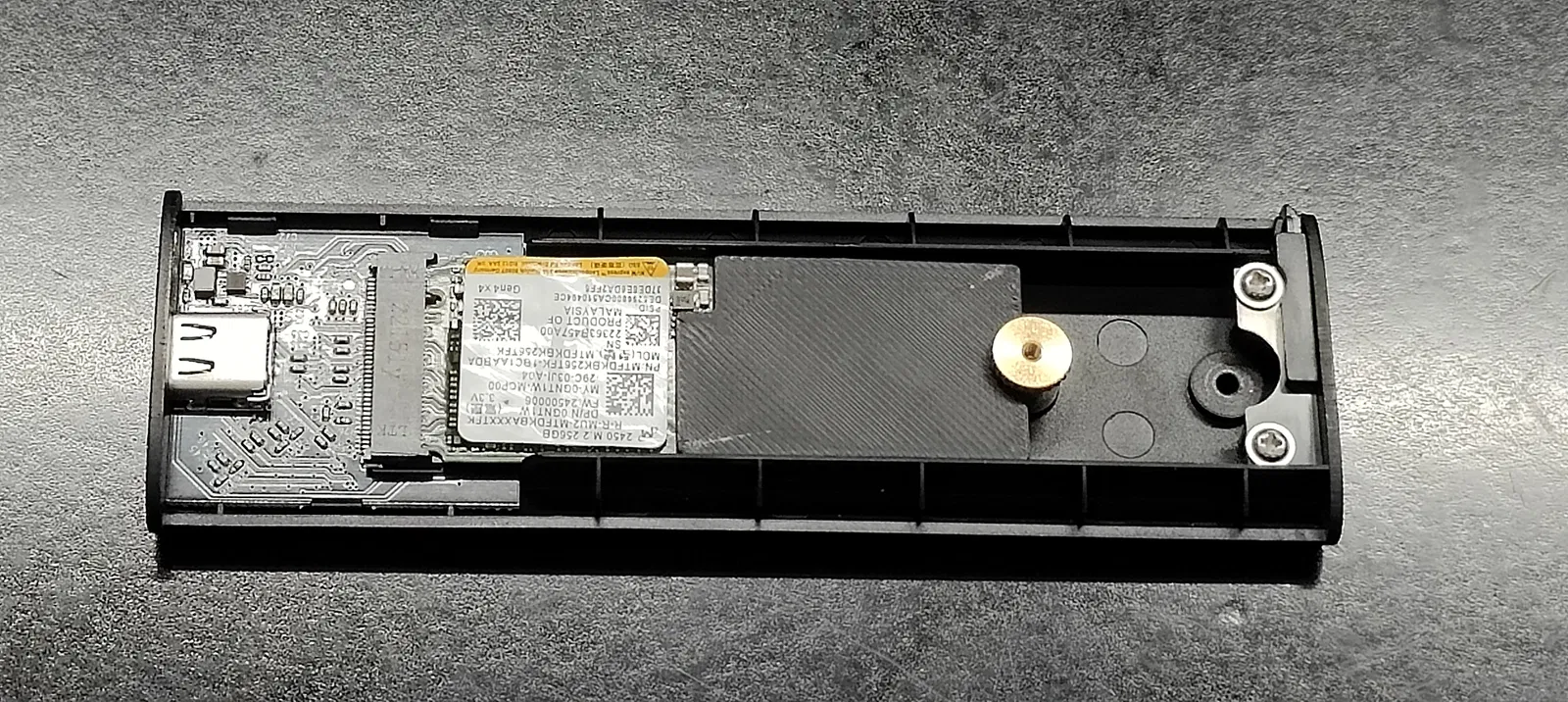 Mình vừa dư ra một ổ cứng M.2 2230 mà không cách nào cố định được vào cái box ổ cứng cũ. Mấy file mình tải về in thử trước đó đều không khớp với độ khít của box. Thế là mình tự thiết kế mấy món này luôn. Thiết kế này có chiều rộng bằng với ổ M.2, được căn giữa chắc chắn, có sẵn rãnh để tránh linh kiện Gen4x4 ở góc và đầu cuối để khớp với chốt giữ. Thay vì phải tốn tiền mua box ổ cứng đúng kích thước, bạn chỉ cần dùng box 2280 rồi in mấy món này để tùy biến cho ổ 2230 của mình, vừa tiện lợi lại vừa linh hoạt hơn nhiều.