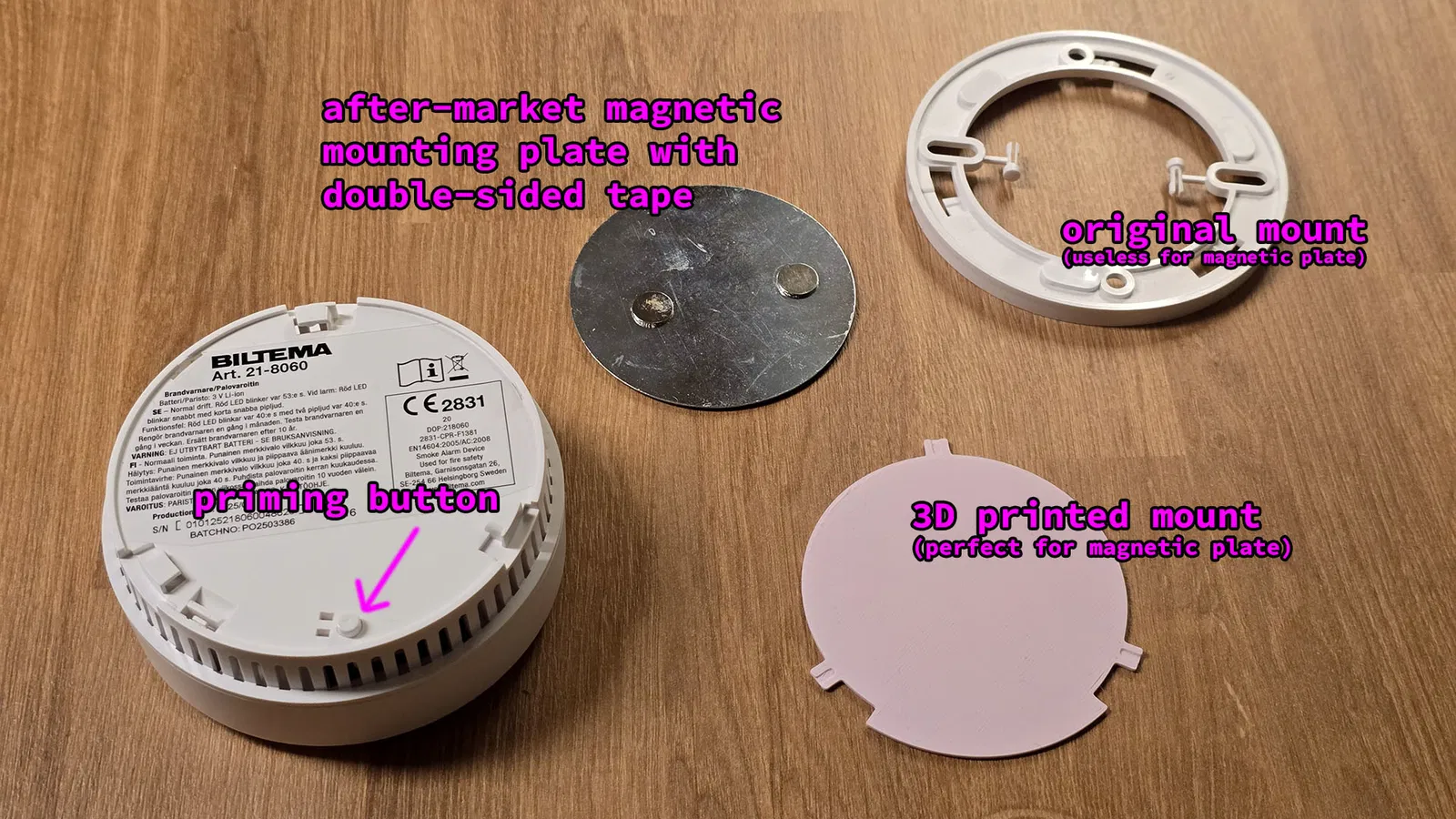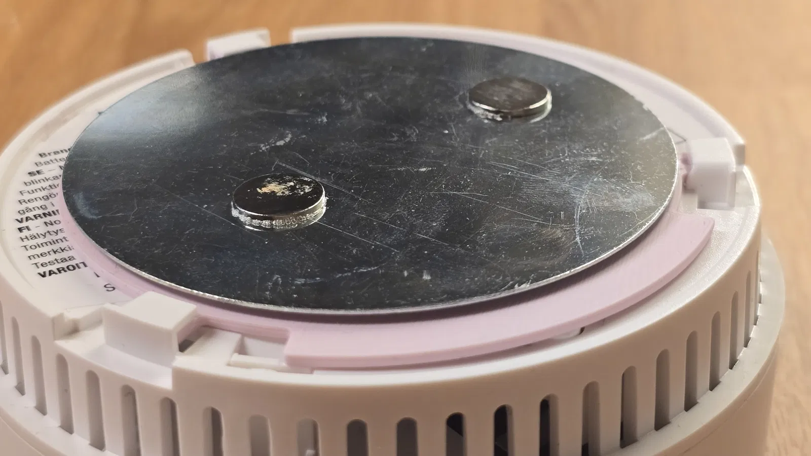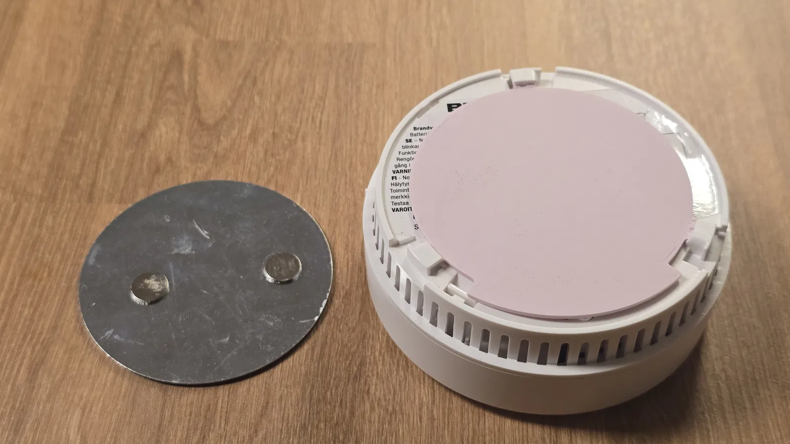Các đế hít nam châm thường không chạm tới nút này, khiến thiết bị báo khói không hoạt động đúng cách. Mô hình này được tạo ra để giải quyết vấn đề đó.