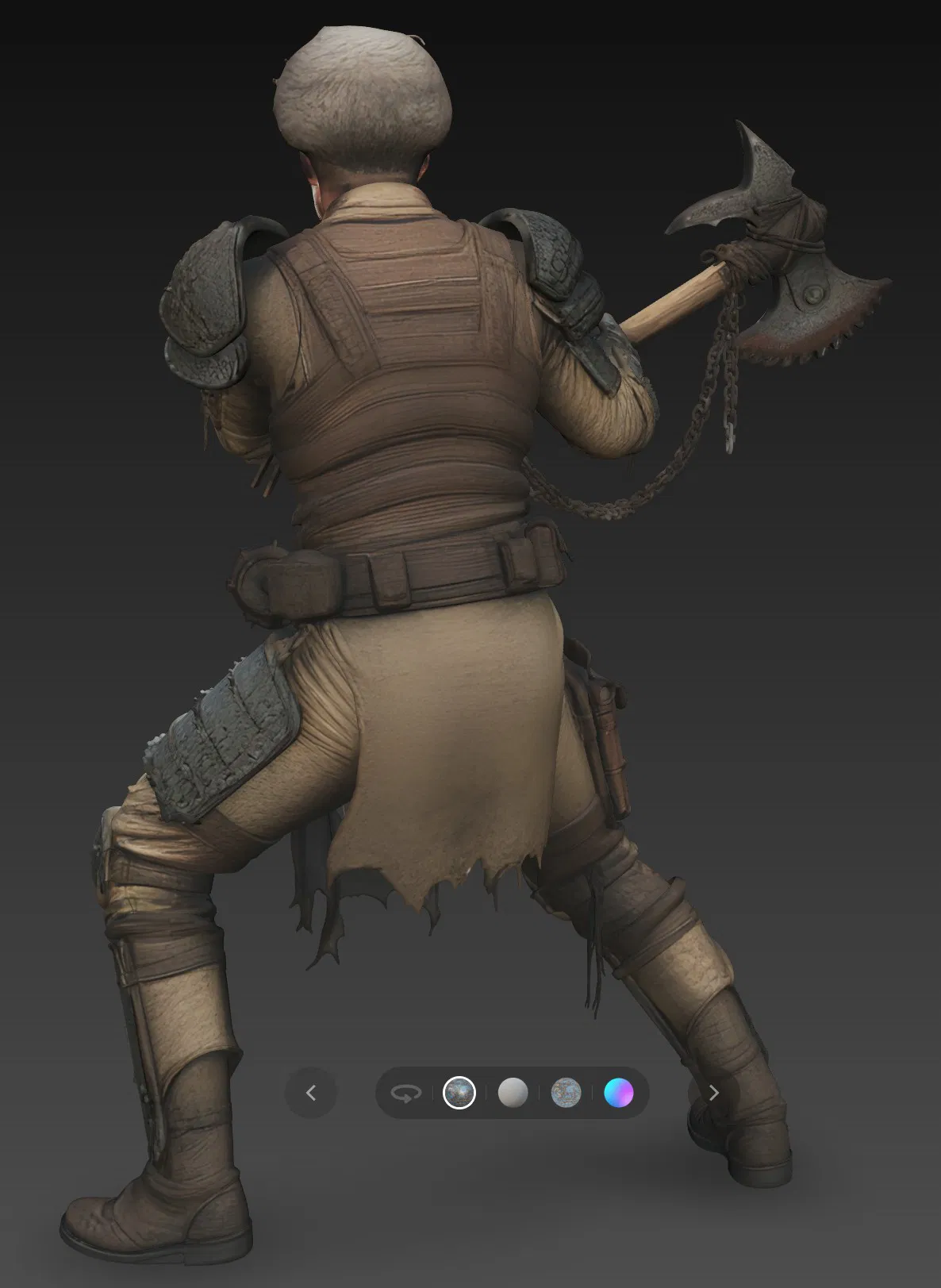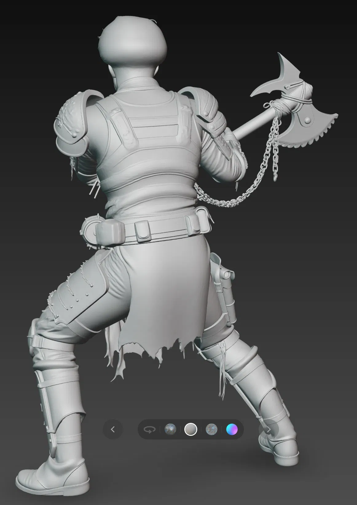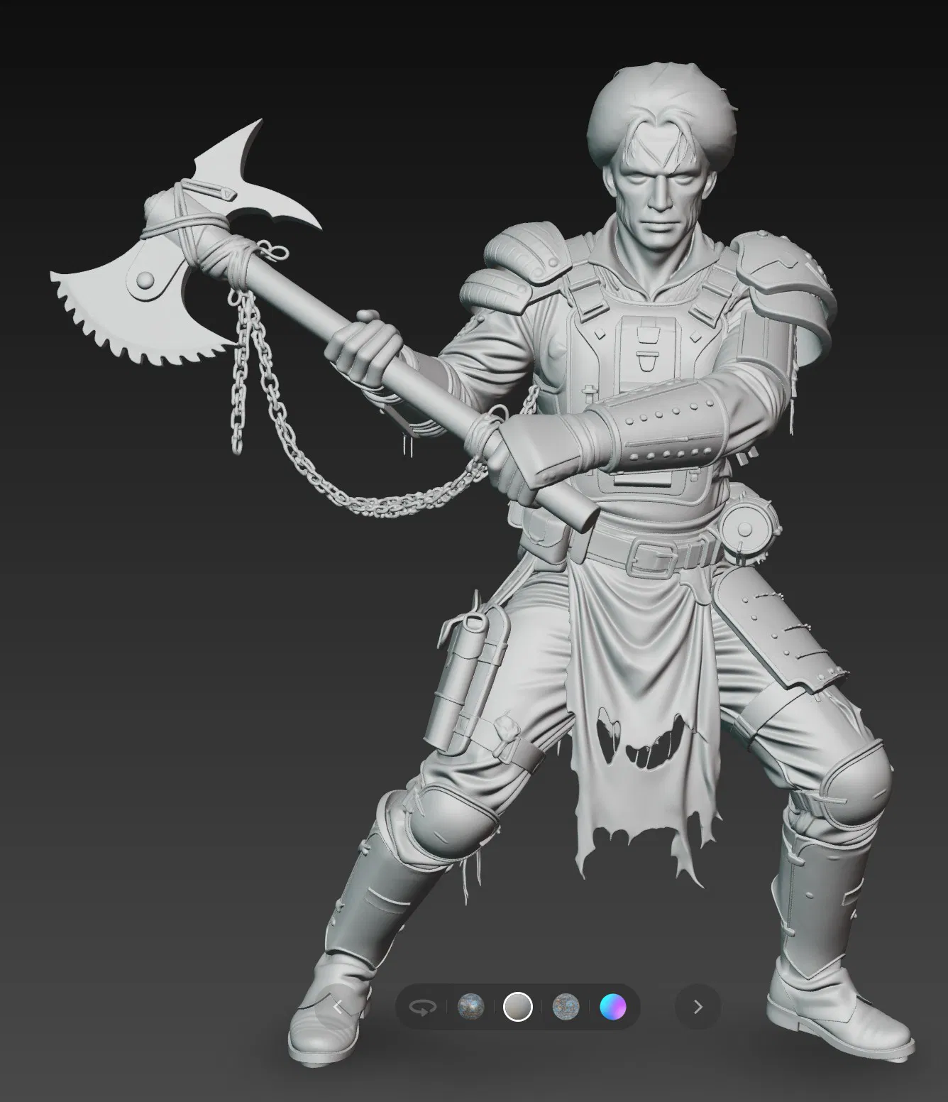 • Chất liệu in: Khuyến khích sử dụng Resin cao cấp để đảm bảo các chi tiết nhỏ như xích trên rìu và các vết rách trên quần áo được thể hiện sắc nét nhất.