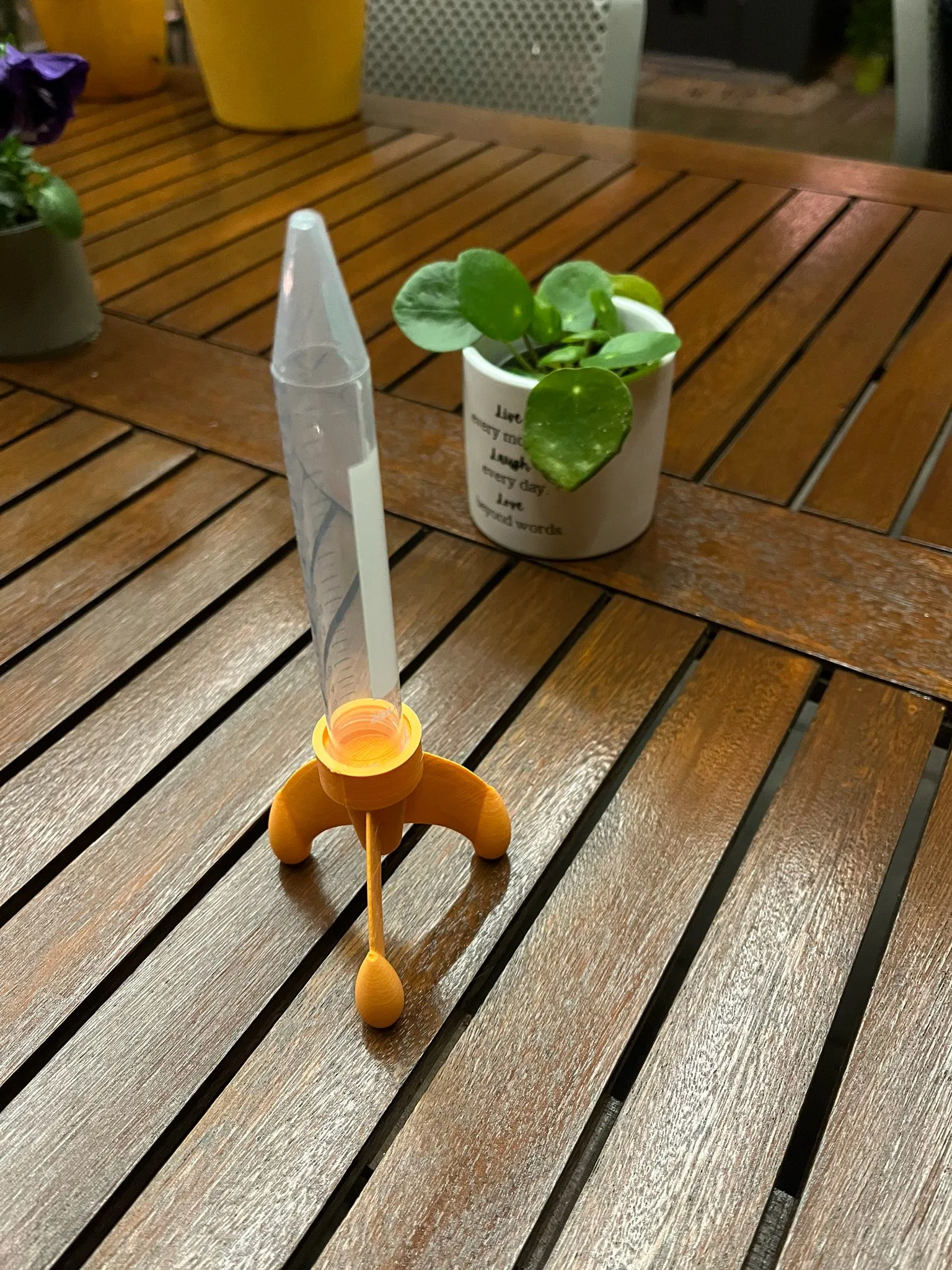 Bạn đang tìm kiếm một món đồ chơi độc lạ để làm mới không gian làm việc hay tạo điểm nhấn cho các buổi tiệc tùng? Mô hình 'Test Tube Rocket' chính là giải pháp cực kỳ thú vị, kết hợp giữa những món đồ dùng trong phòng thí nghiệm và sự sáng tạo của công nghệ in 3D. Với thiết kế tinh tế, phần đế tên lửa được in 3D sẽ đóng vai trò như bệ phóng, giữ cố định chiếc ống nghiệm 15ml một cách chắc chắn và thẩm mỹ, tạo nên một ngoại hình giống như tên lửa đang chuẩn bị bay vào vũ trụ.