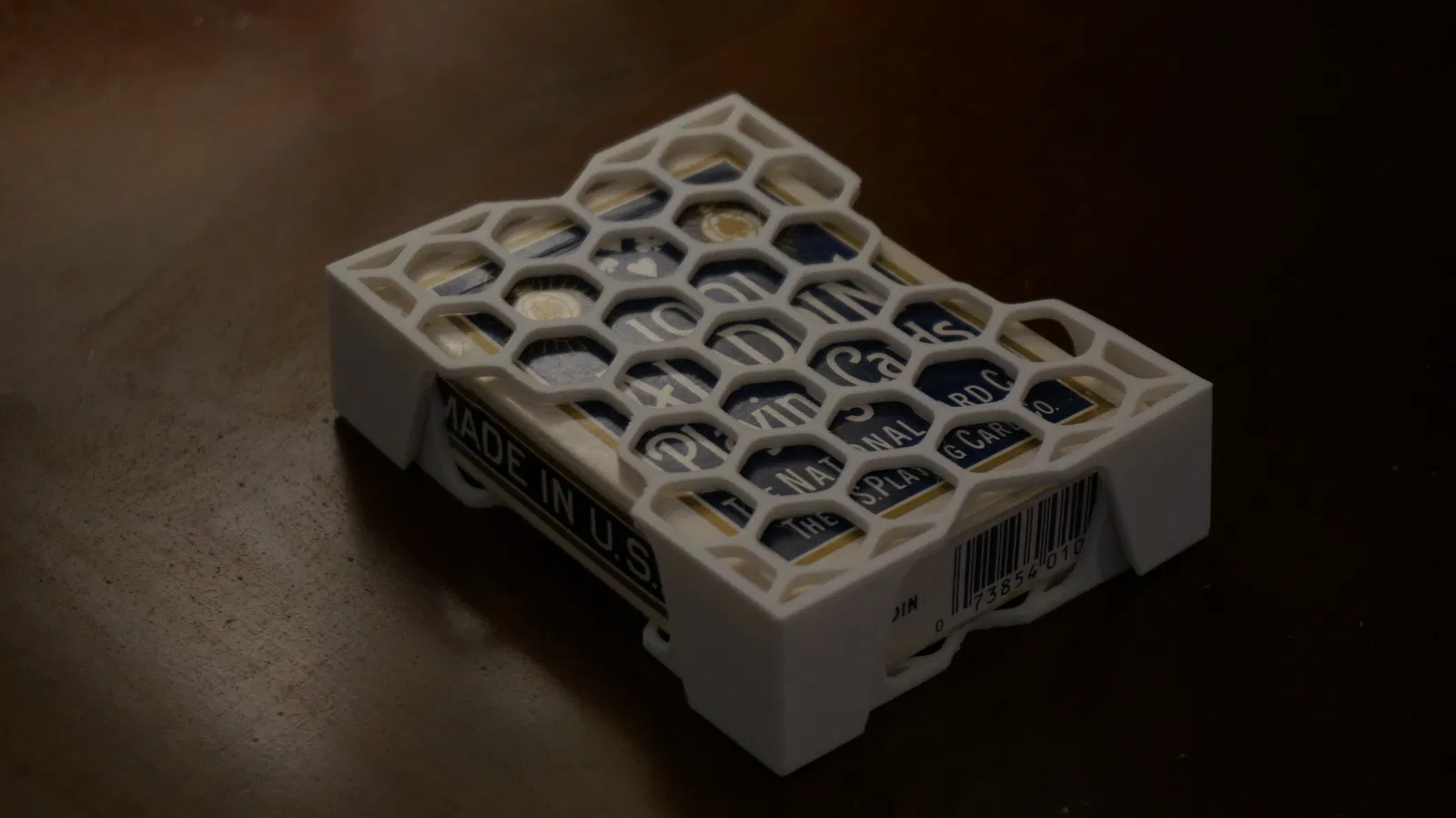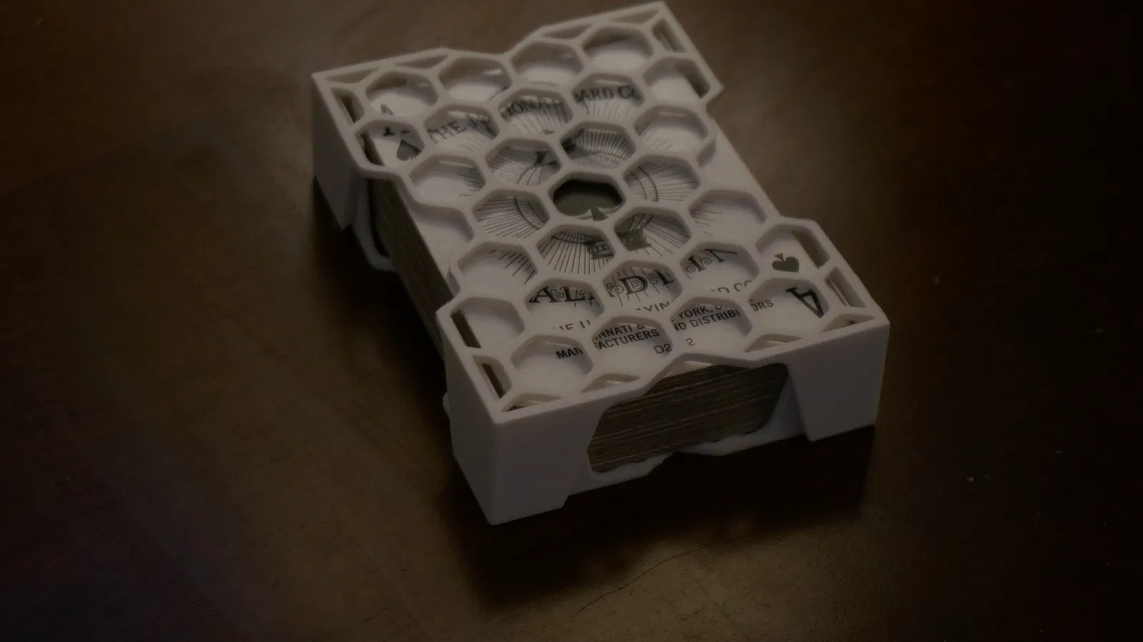Sản phẩm này được thiết kế để vừa khít với vỏ giấy của bộ bài Bicycle và các loại bài có kích thước tương đương, đồng thời giữ bộ bài bên trong với một khoảng trống nhỏ vừa đủ. Mình đã in bằng nhựa PLA, nhưng bạn cũng có thể dùng bất kỳ loại nhựa nào hơi dẻo một chút để hai nửa hộp có thể khớp chặt với nhau bằng lực ma sát. Với thiết lập slicer mặc định thì không cần quan tâm đến độ infill đâu ạ, vì các chi tiết của mẫu này khá mỏng. Hộp này đã vượt qua bài kiểm tra rơi từ độ cao 4 feet (khoảng 1.2 mét) mà vẫn an toàn.