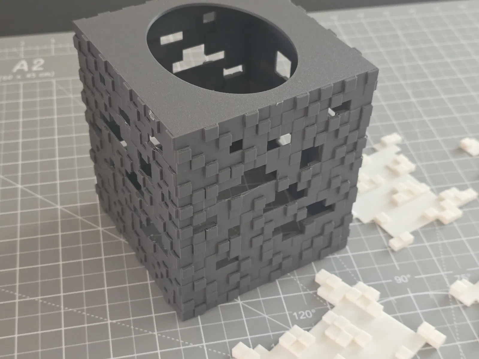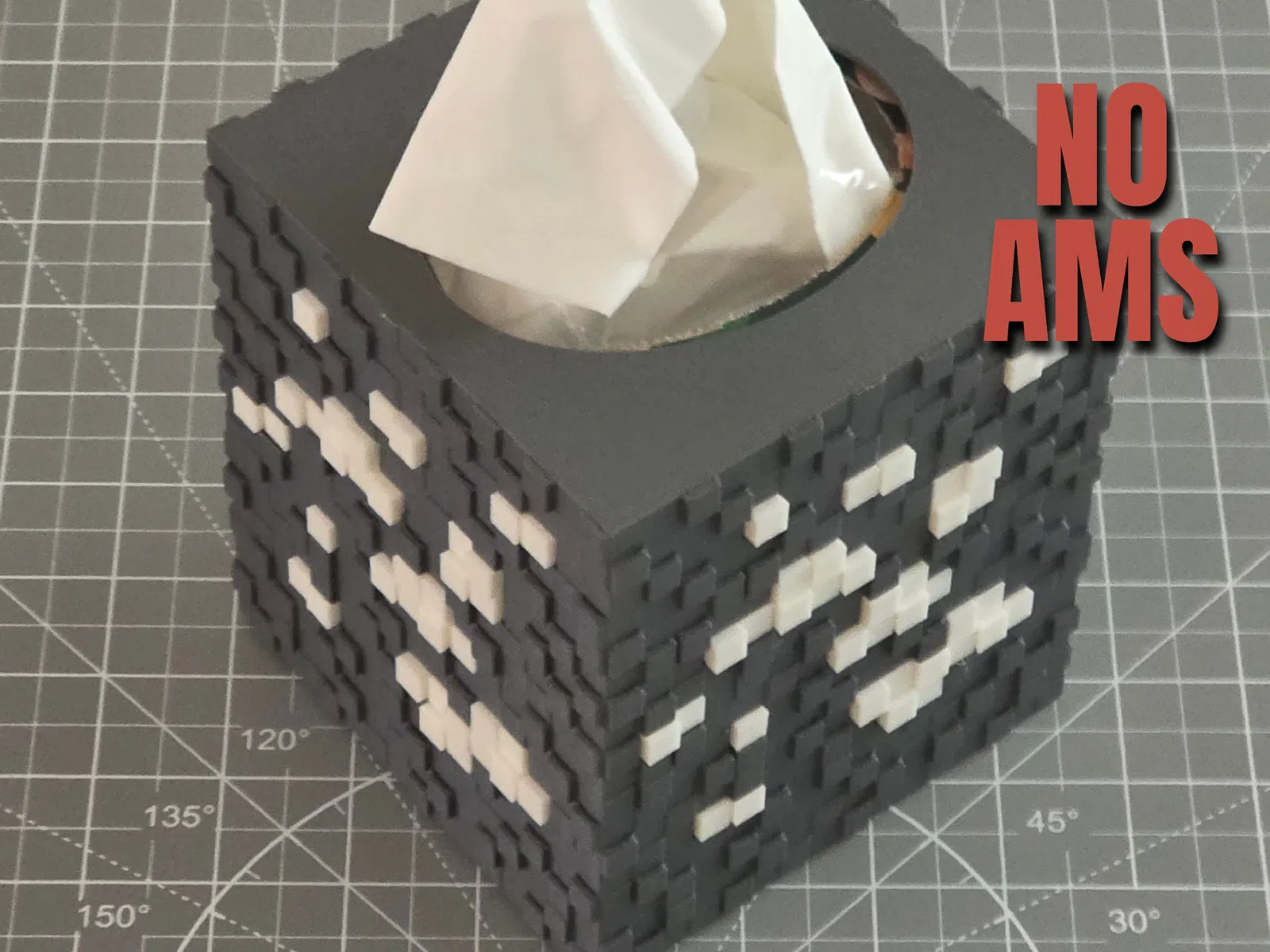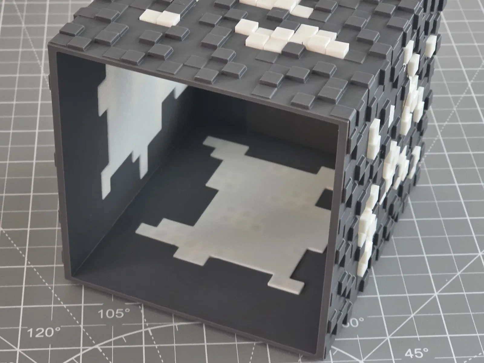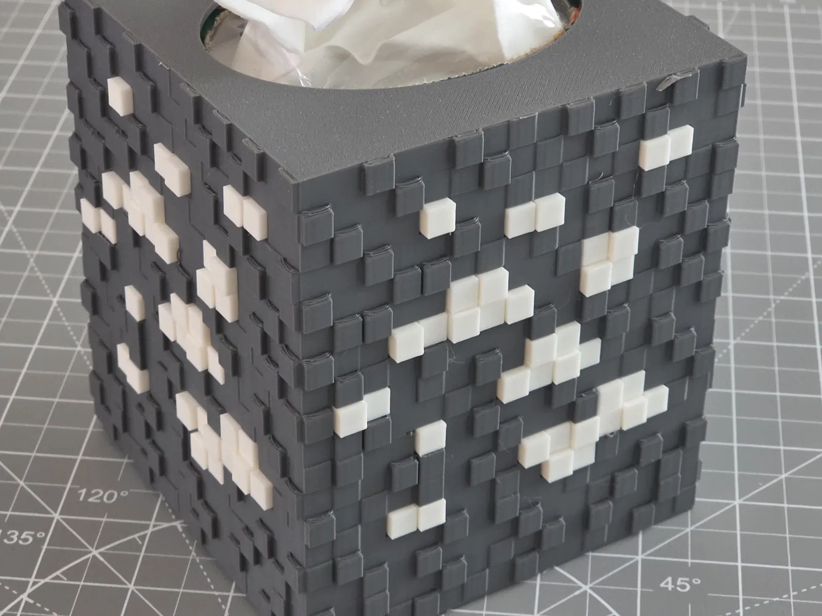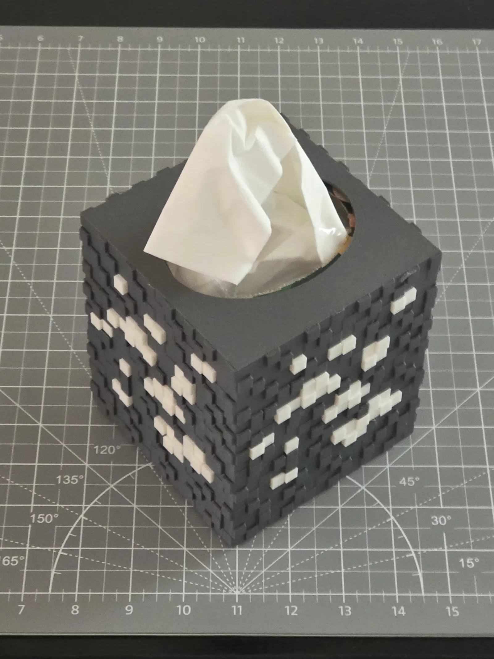 Vỏ bọc hộp khăn giấy trang trí hình khối phong cách Minecraft Diamond Ore. Kích thước nhỏ gọn, không cần sử dụng AMS. Tối ưu cho nhựa Bambu Lab PLA Basic.