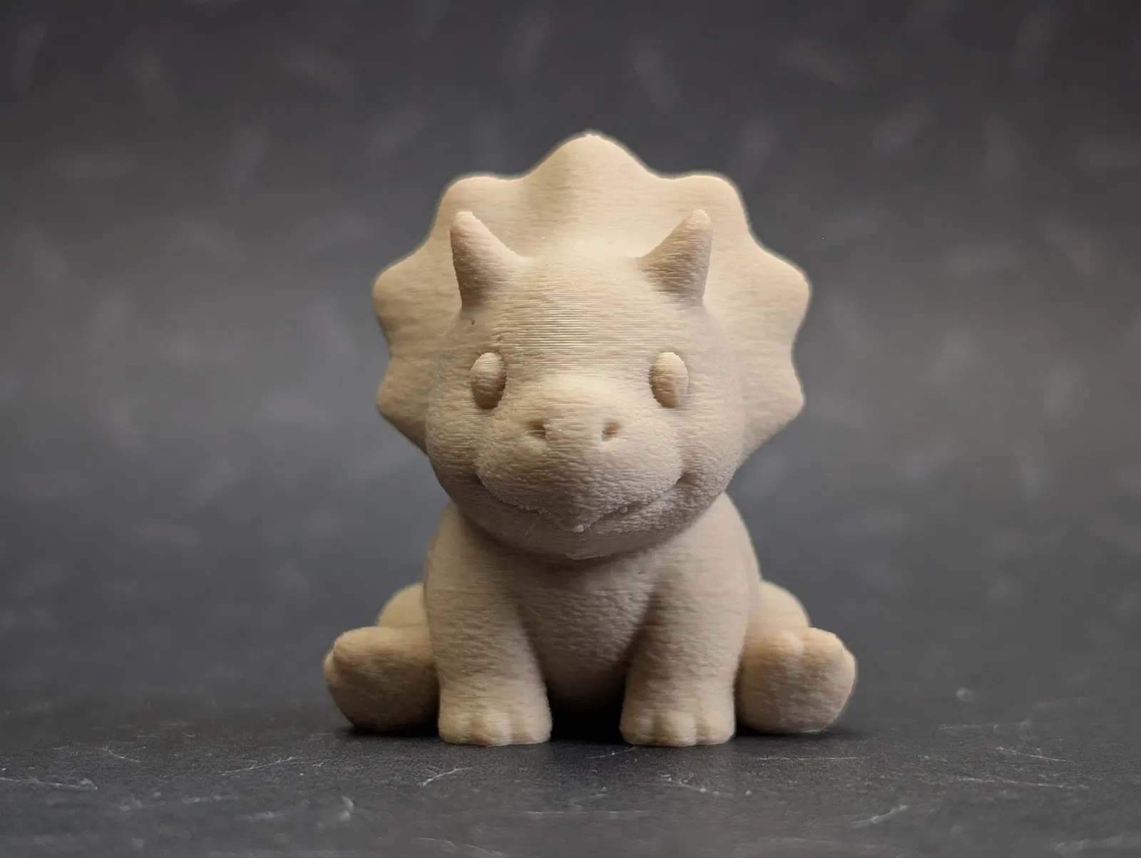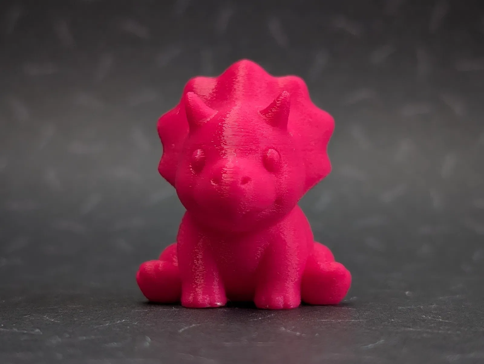 Một chú khủng long Triceratops nhỏ nhắn nhưng cực kỳ cuốn hút. Mẫu này rất dễ in, tốn ít nhựa, cực kỳ thích hợp để làm móc khóa hoặc vật phẩm trang trí xinh xắn cho góc làm việc của bạn thêm phần vui nhộn.
