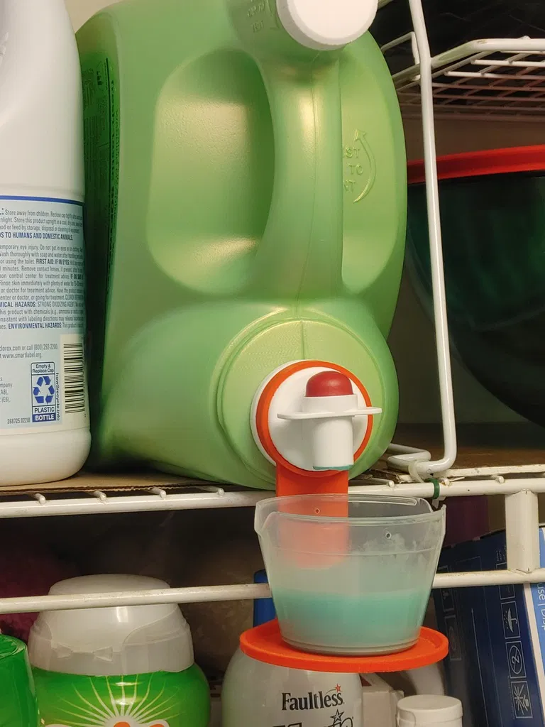 Bạn có bao giờ cảm thấy phiền phức khi mỗi lần giặt đồ, phần nước giặt còn sót lại trong cốc đong cứ nhỏ giọt làm dơ sàn hay kệ để đồ không? Đây chính là giải pháp đơn giản nhưng cực kỳ hiệu quả mà bạn cần cho căn bếp hoặc phòng giặt ủi của mình. Phụ kiện in 3D này được thiết kế thông minh để gắn trực tiếp vào vòi của các loại bình nước giặt phổ biến như Gain hay Tide, giúp giữ cốc đong ngay dưới vòi xả một cách gọn gàng và sạch sẽ.