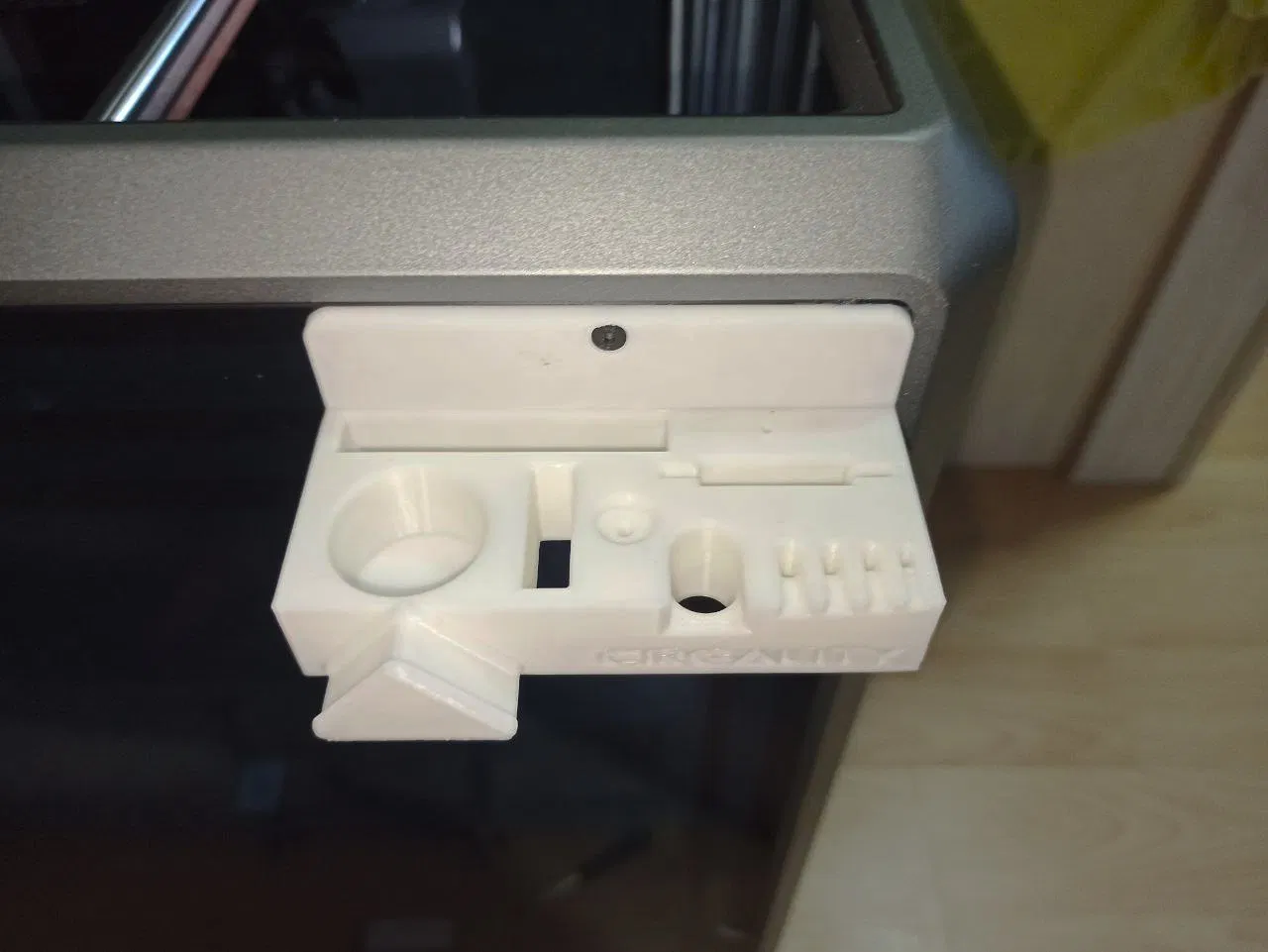 Vì dòng K1 chưa có giá đỡ dụng cụ ưng ý, mình đã tự thiết kế bộ này. Phiên bản V2 đã cải tiến các vị trí lỗ, khắc phục tình trạng rơi dụng cụ và kẹt đồ. Bạn cần dùng ốc 8mm để lắp đặt. Mình khuyên dùng nhựa ABS để đảm bảo độ bền.