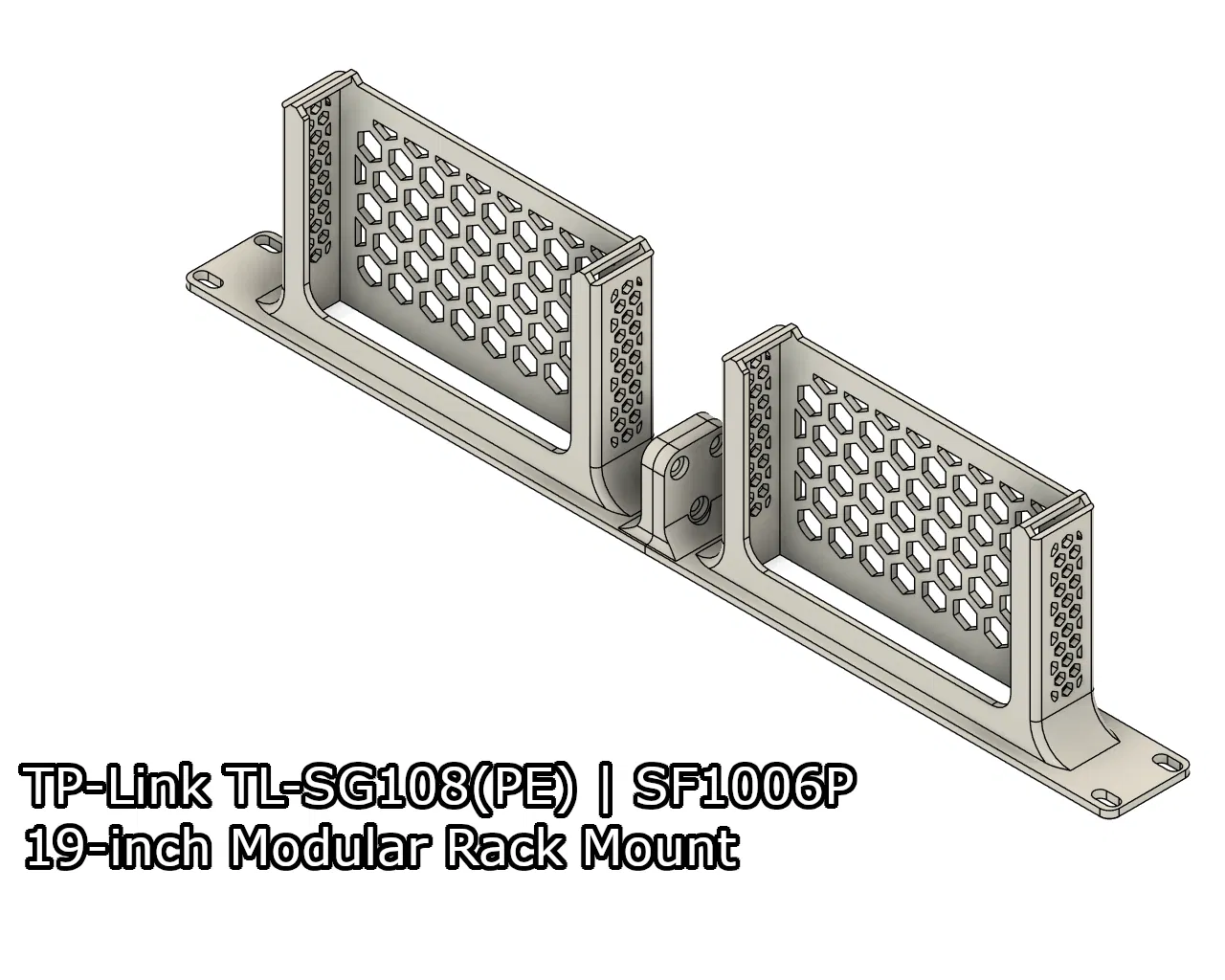 Đây là bộ giá treo tủ rack 19-inch dạng module gồm 2 phần dành cho các dòng switch TP-Link TL-SG108 | TL-SG108PE | TL-SF1006P | TL-SG608E. Mình đã đính kèm cả file 3MF để bạn tiện sử dụng. Giá treo này thuộc hệ thống rack 19-inch modular mà mình tự thiết kế. Bạn có thể thoải mái phối hợp các module này với những loại giá treo khác. Hãy xem thêm các mẫu của mình tại đây để tìm thêm các module rack 19-inch khác nhé. Nếu thấy các mẫu này hữu ích, hãy cân nhắc mời mình một ly cà phê nha ;)