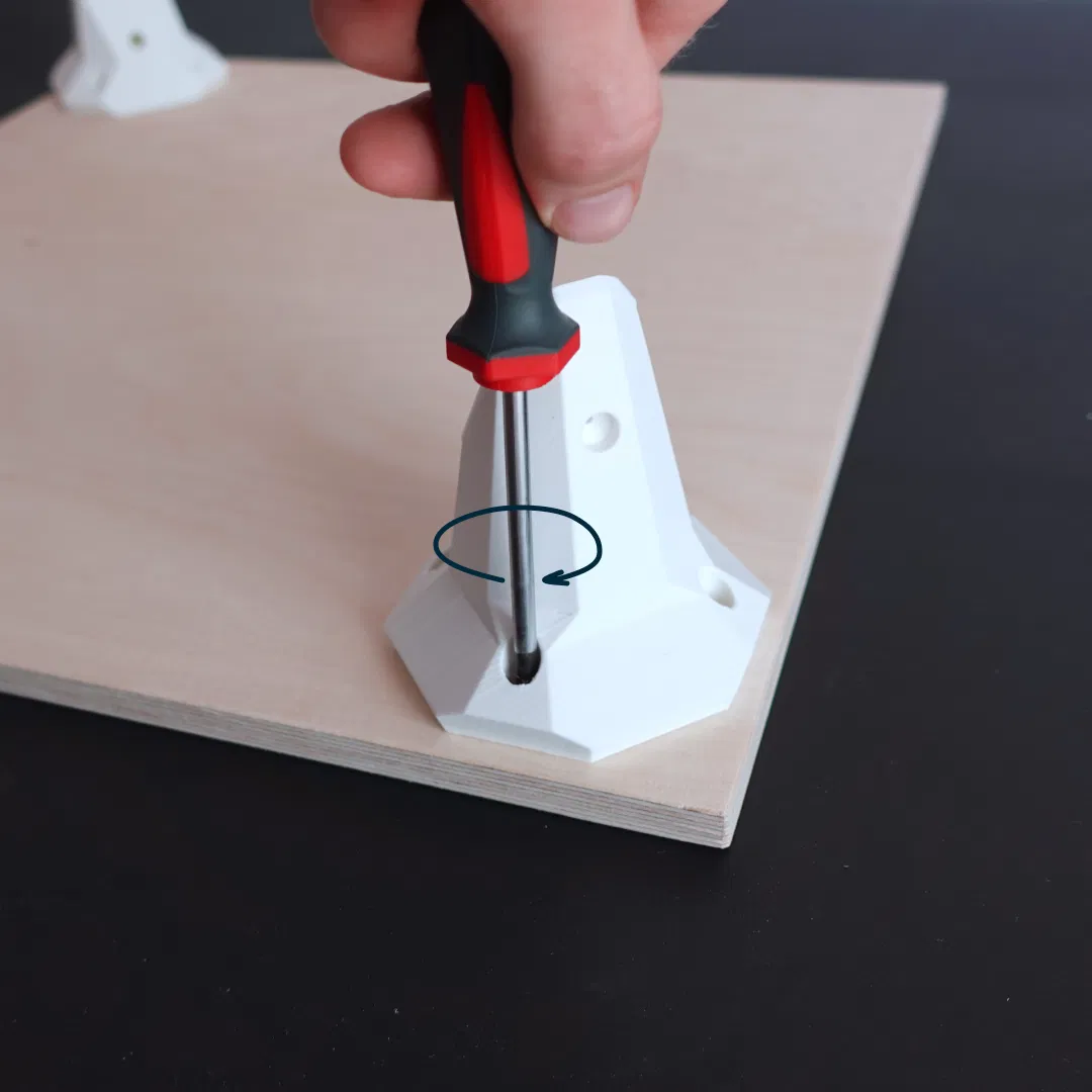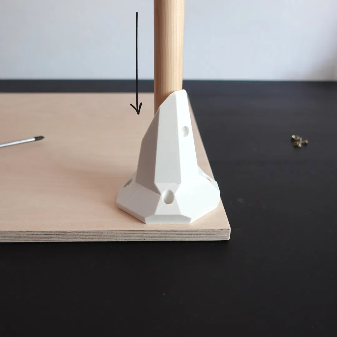 • Xác định vị trí đặt chân bàn và bắt vít các chi tiết in 3D vào tấm ván.