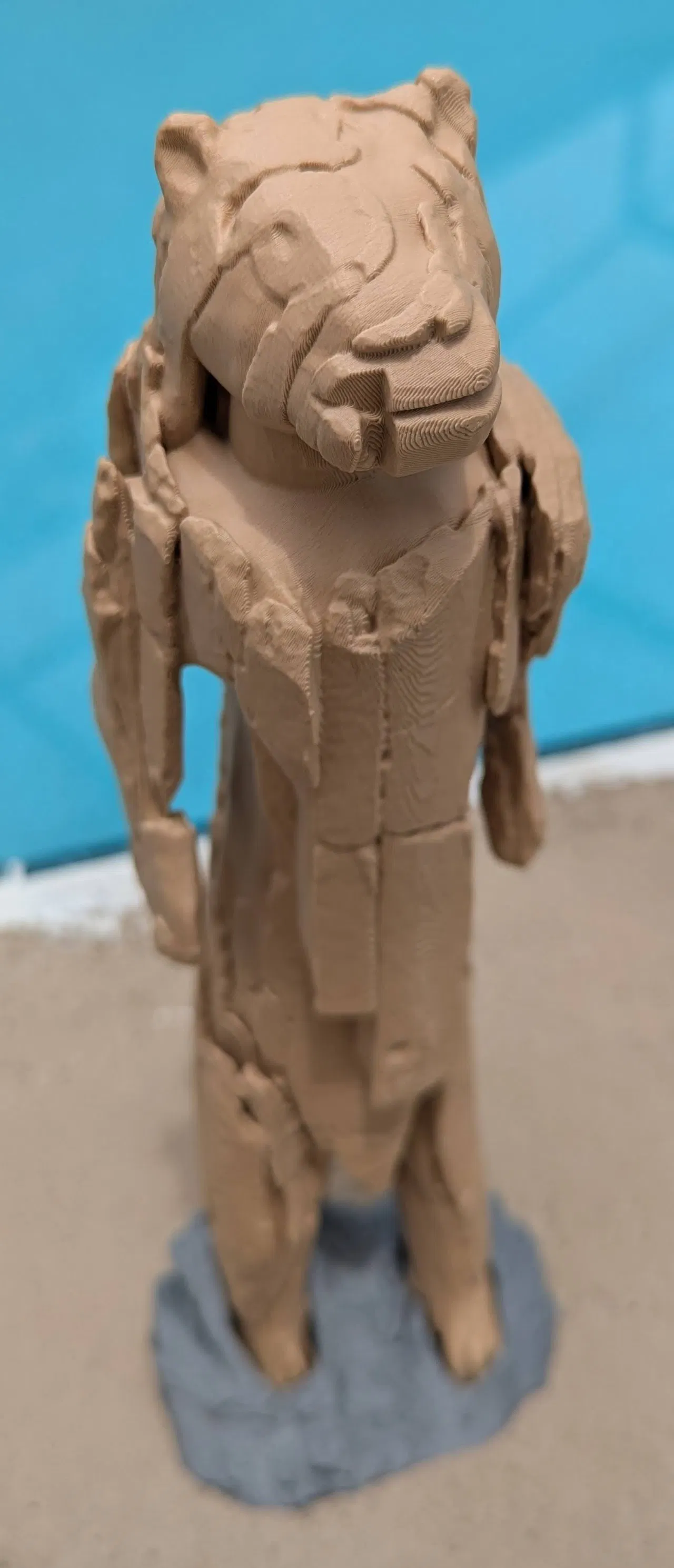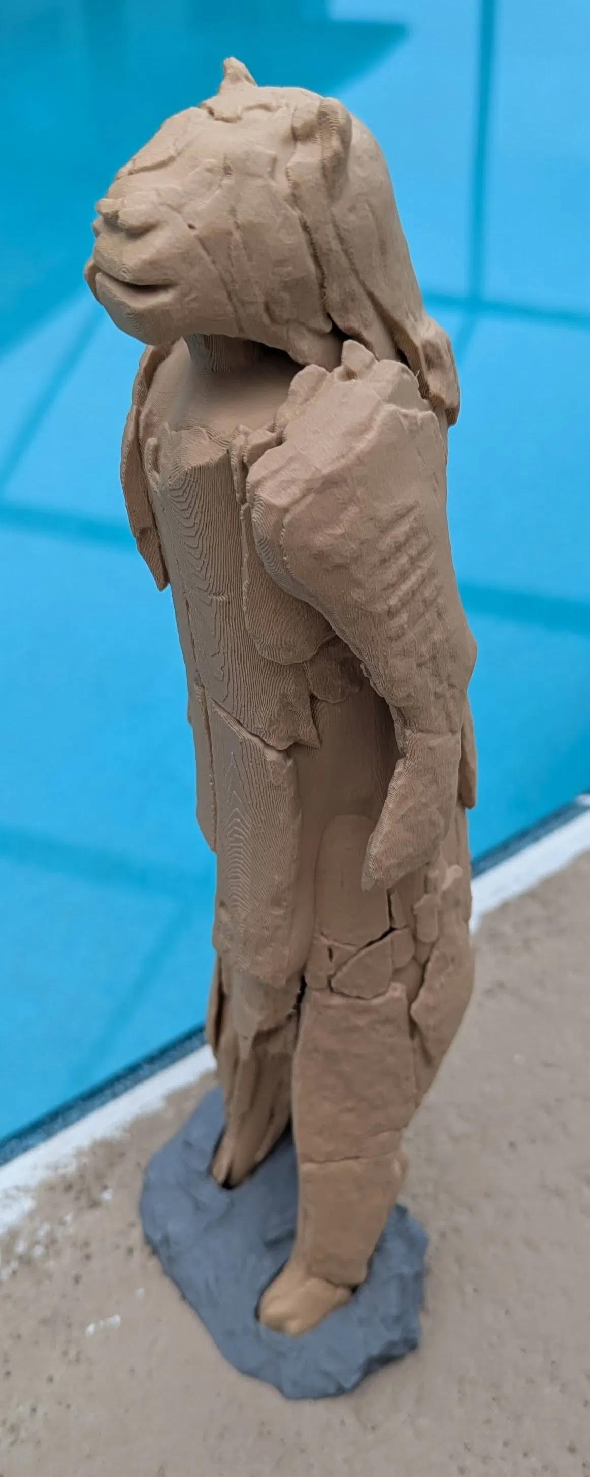 Tuyên bố miễn trừ trách nhiệm: Mô hình này dựa trên bản quét 3D của tượng Löwenmensch từ Bảo tàng Ulm. Bản quét gốc không được công bố rộng rãi. Mình tạo ra phiên bản đã chỉnh sửa lại nhiều để sử dụng cho mục đích giáo dục phi thương mại. Nếu bạn là đại diện của đơn vị giữ bản quyền và muốn yêu cầu gỡ bỏ, vui lòng liên hệ với mình.