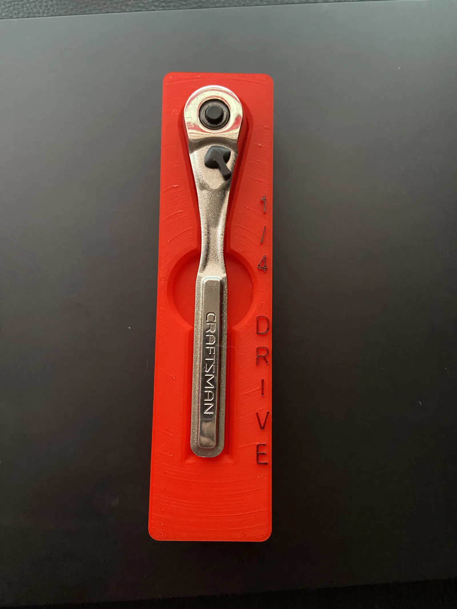 Khay Gridfinity kích thước 4x1x4 được thiết kế riêng để đựng cần siết lực Craftsman 1/4 Drive (mã 44807). Khay có sẵn lỗ để lắp nam châm 6x2mm, giúp cố định dụng cụ gọn gàng và ngăn nắp trong xưởng của bạn.