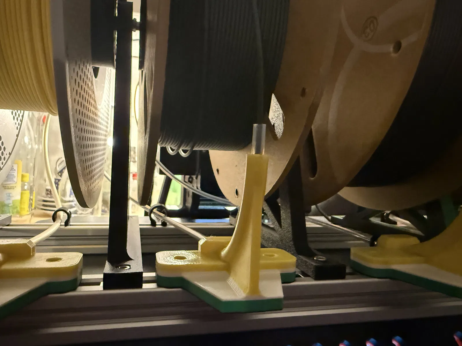Chào mọi người, đây là bản remix của mình dựa trên Prusa CORE One MMU3 Community version của Prusa Guy, kết hợp với bộ cực kỳ xịn sò từ Sanka. Mình rất thích thiết lập MMU3 core one, nhưng phần giữ cuộn nhựa (spoolholder) và bộ buffer hoạt động không được ưng ý cho lắm. Mình đang trong quá trình thử nghiệm, nhưng máy đã chạy liên tục hơn 60 giờ và hoạt động rất ổn định. Mọi người có ý tưởng nào để thay thế thanh nhôm bằng chi tiết in 3D hoàn toàn không? Như vậy thì mình có thể in tất cả các bộ phận và lắp ráp chỉ bằng ốc vít. Cảm ơn các tác giả đã truyền cảm hứng và công sức thiết kế. Hướng dẫn: 1. In tất cả linh kiện của MMU3 community version và thay thế hai tấm mặt trước bằng thiết kế của mình (lời khuyên là bạn nên khoan lỗ vào các tấm gốc). 2. Dùng 4 ốc M3x8mm và T-slot nuts để gắn thanh nhôm vào các tấm phía trên. 3. Lắp mọi thứ lên phía trên như trong hình và nối các ống PTFE. 4. Chúc các bạn in ấn vui vẻ. BOM: 2x Thanh nhôm 450mm 2020, 26x T-slot nuts 2020 M3, 22x M3x10, 4x M3x8, 5x đầu nối PTFE 10mm. Cáp MMU3 cần được kéo dài (bạn có thể nối thêm bằng đầu nối hàn 26 – 24 AWG). Ngoài ra, bạn cần in thêm các bộ phận từ các link được cung cấp trong bài gốc. Chúc các bạn thành công!
