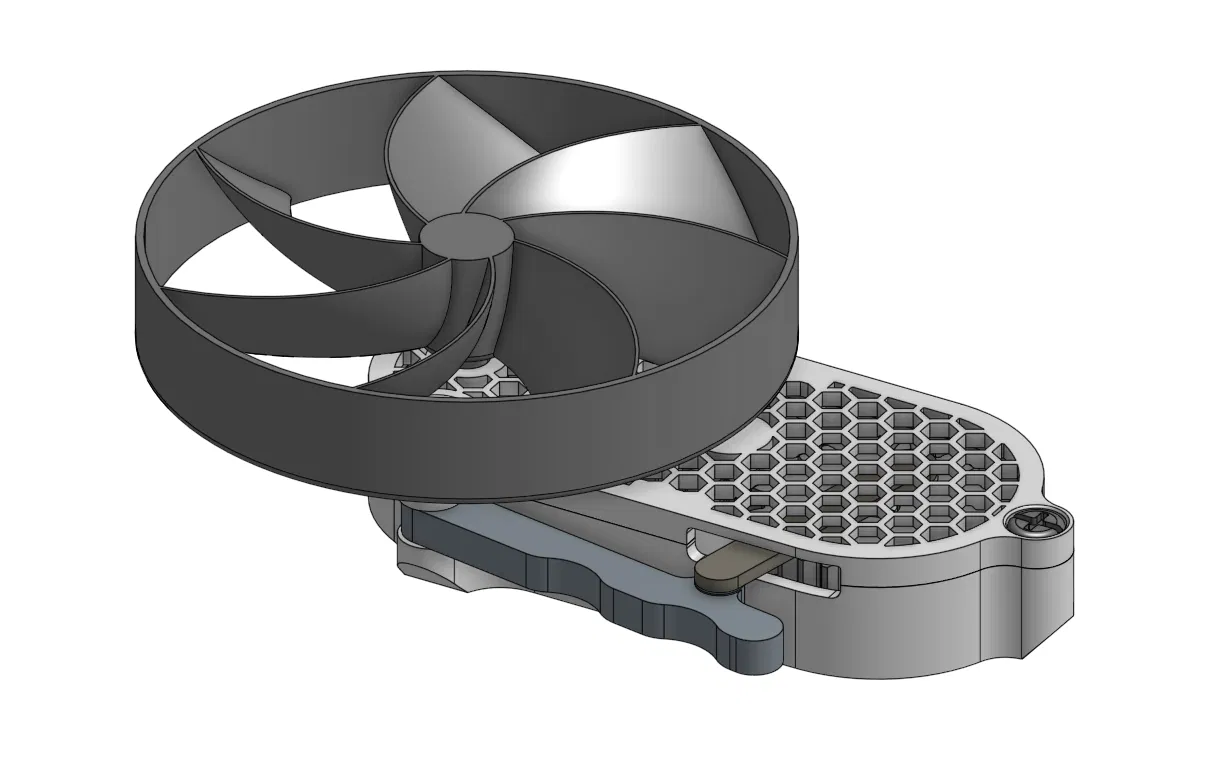 Đây là chiếc quạt cầm tay in 3D hoàn toàn được vận hành bằng cơ chế quay tay. Bằng cách bóp tay cầm liên tục, thanh truyền sẽ chuyển đổi chuyển động tịnh tiến thành chuyển động quay, làm cánh quạt phía trước xoay. Cánh quạt được gắn chắc chắn vào trục bằng khớp khóa kết hợp với đầu bi (ball snap fit). Sản phẩm có hai loại cánh là thuận chiều kim đồng hồ (CW) và ngược chiều kim đồng hồ (CCW) (mình khuyên nên in loại CW).