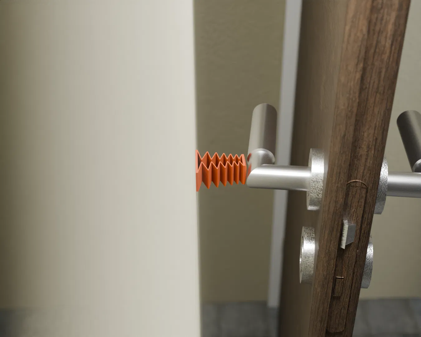 Sản phẩm chặn cửa in 3D này giúp bảo vệ tường và tay nắm cửa nhờ thiết kế lò xo độc đáo giúp giảm chấn khi va chạm. Được thiết kế để nén theo phương ngang khi cửa mở, nó giúp ngăn ngừa hư hỏng mà vẫn giữ được vẻ ngoài gọn gàng, tinh tế.