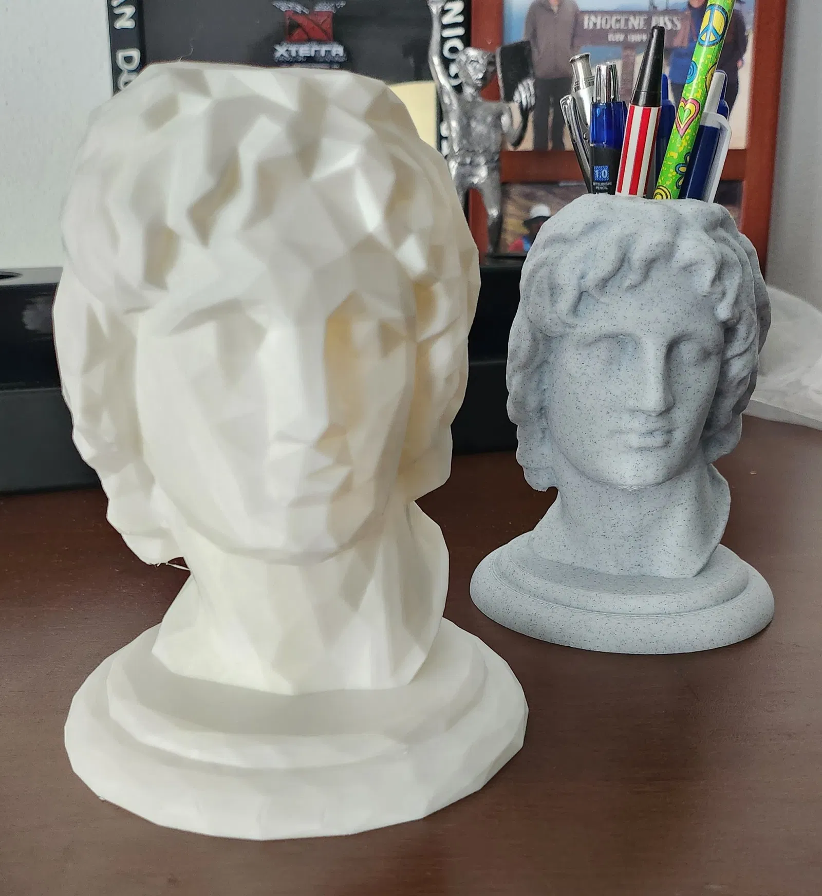 Mẫu in được hiển thị trong các bức ảnh được điều chỉnh theo tỷ lệ 110% trong phần mềm cắt để có chiều cao khoảng 150 mm, bằng PLA trắng.