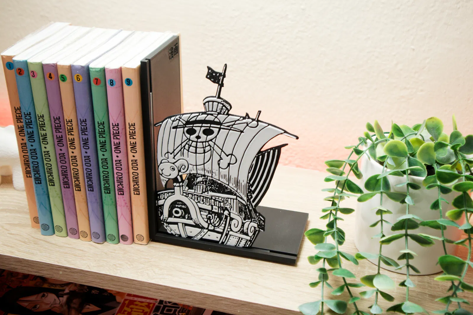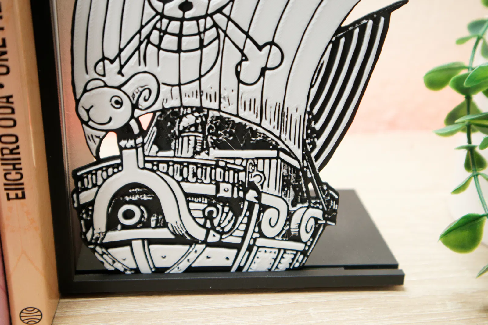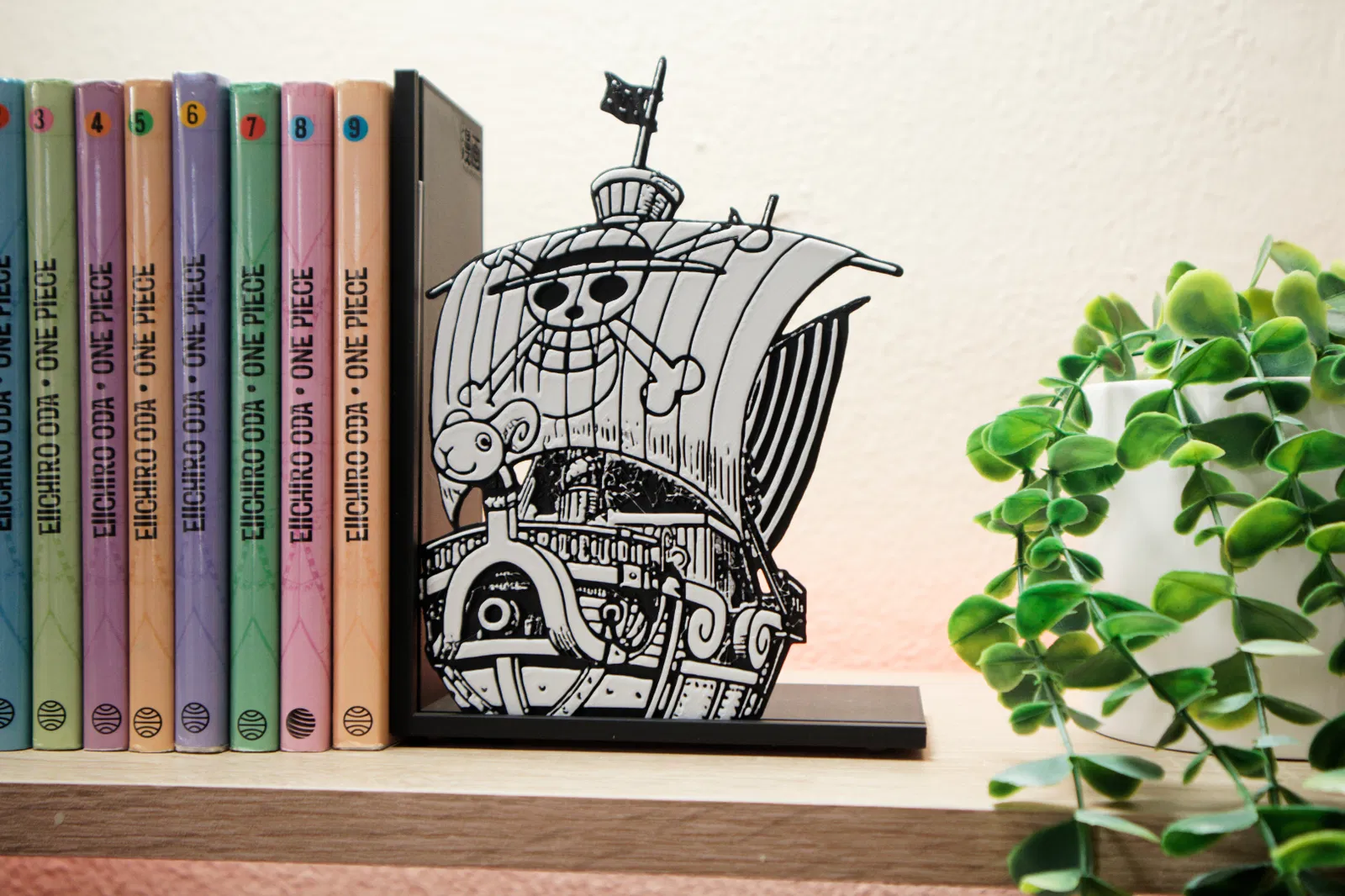 Trang trí kệ sách của bạn với chặn sách tàu Going Merry cực chất. Thiết kế tối ưu cho in 3D với nhiều tùy chọn màu sắc, phù hợp cho mọi fan cứng của One Piece.